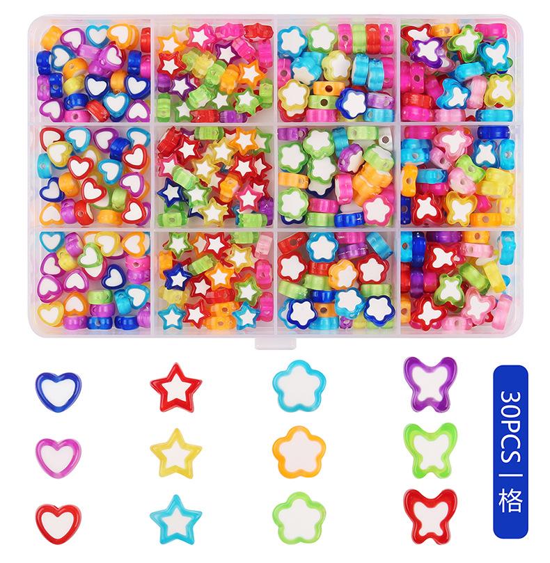 Nombre del producto: Juego de cuentas sueltas de amor bicolor, estrella de cinco puntas, mariposa