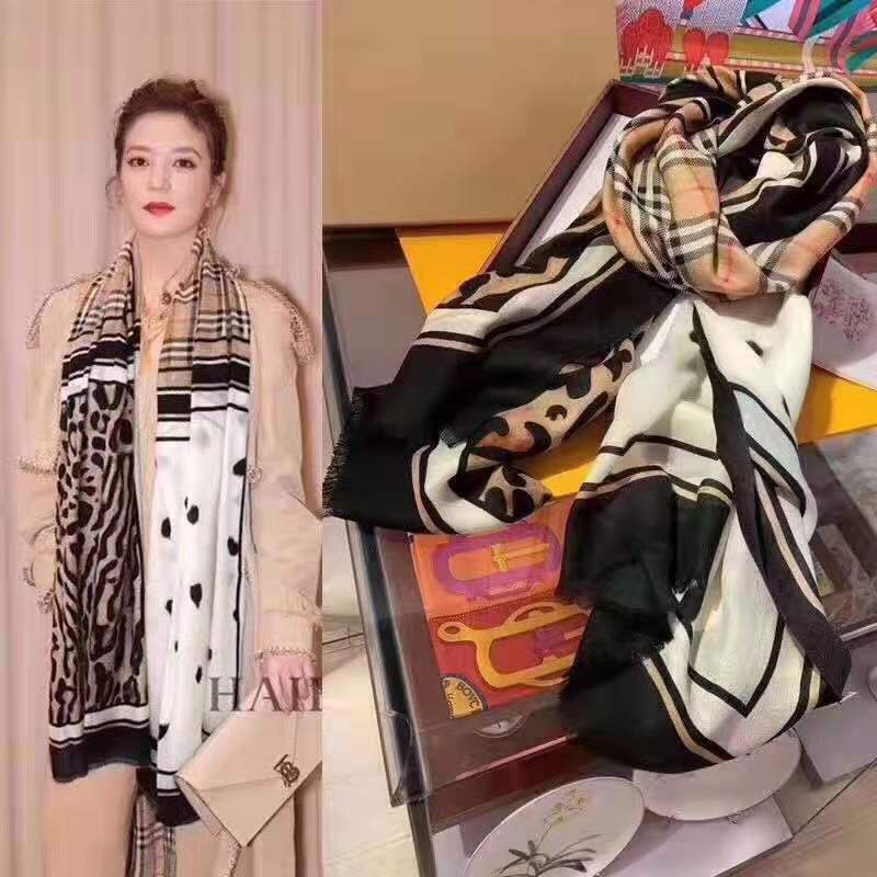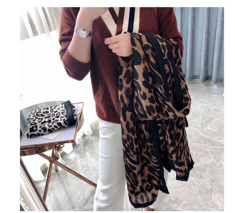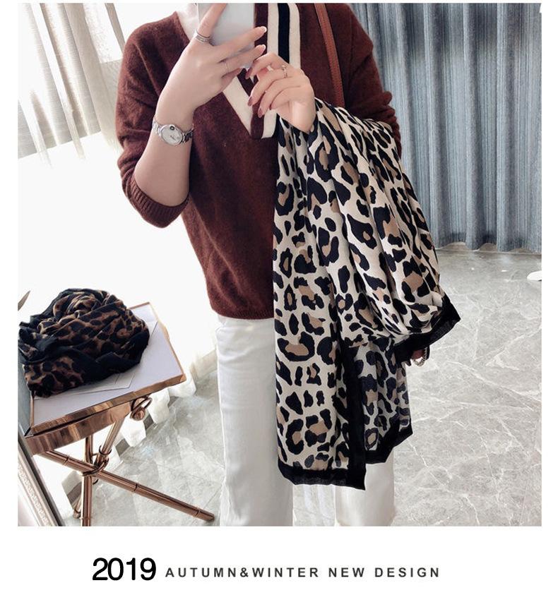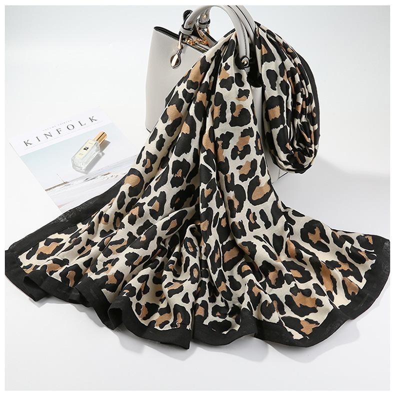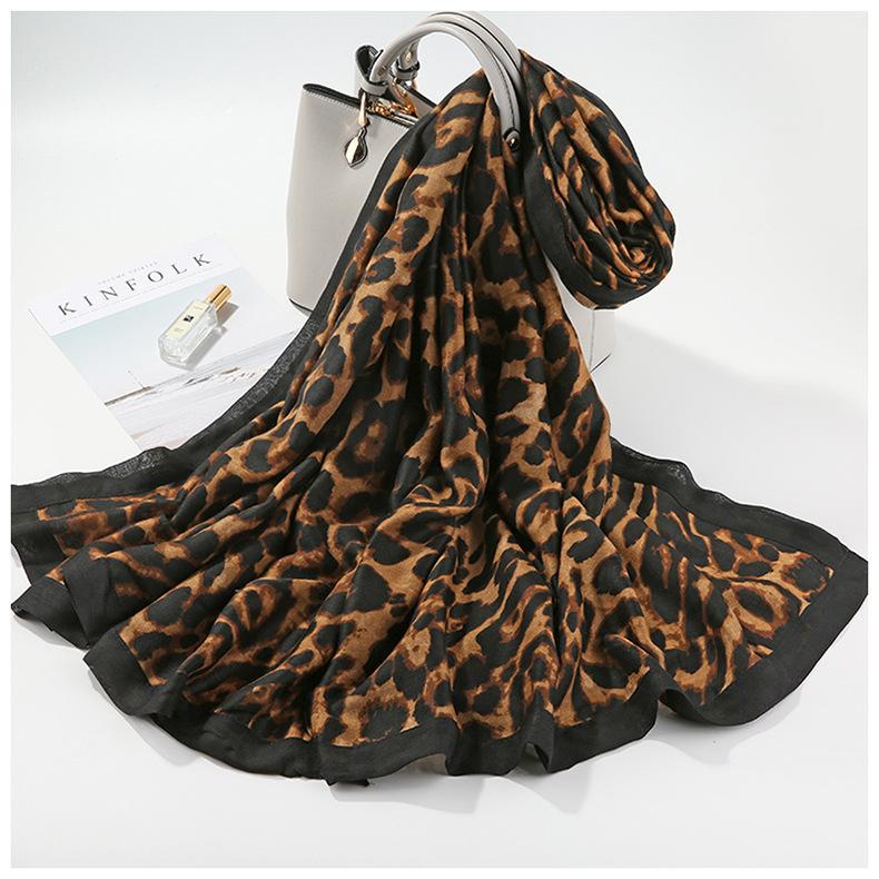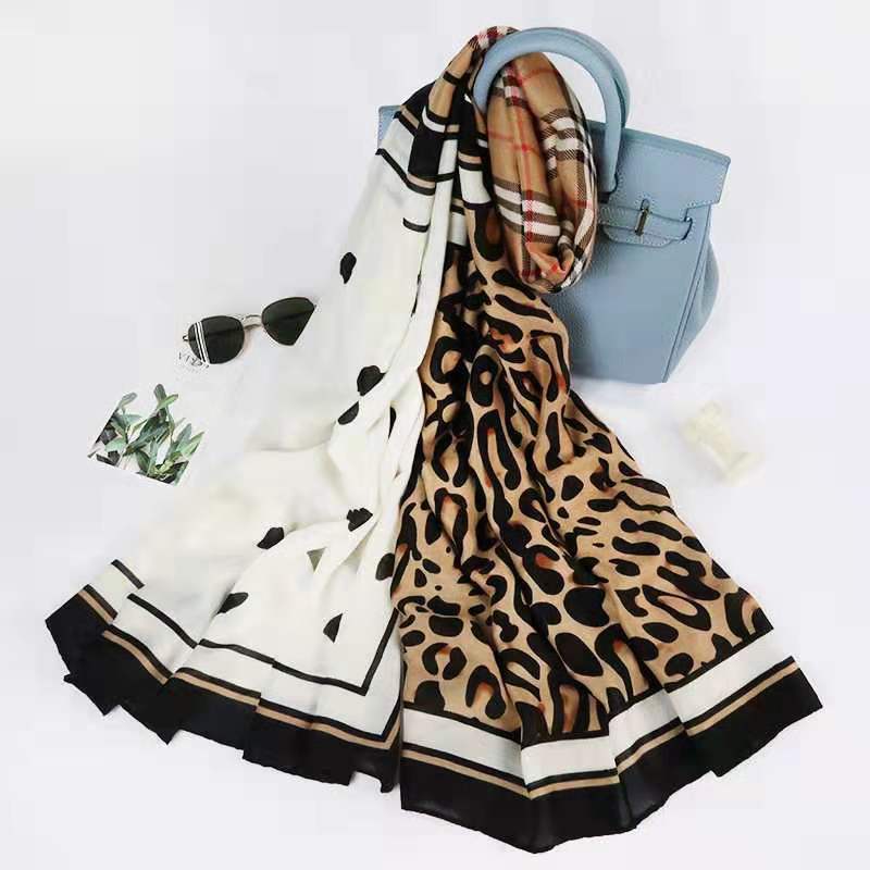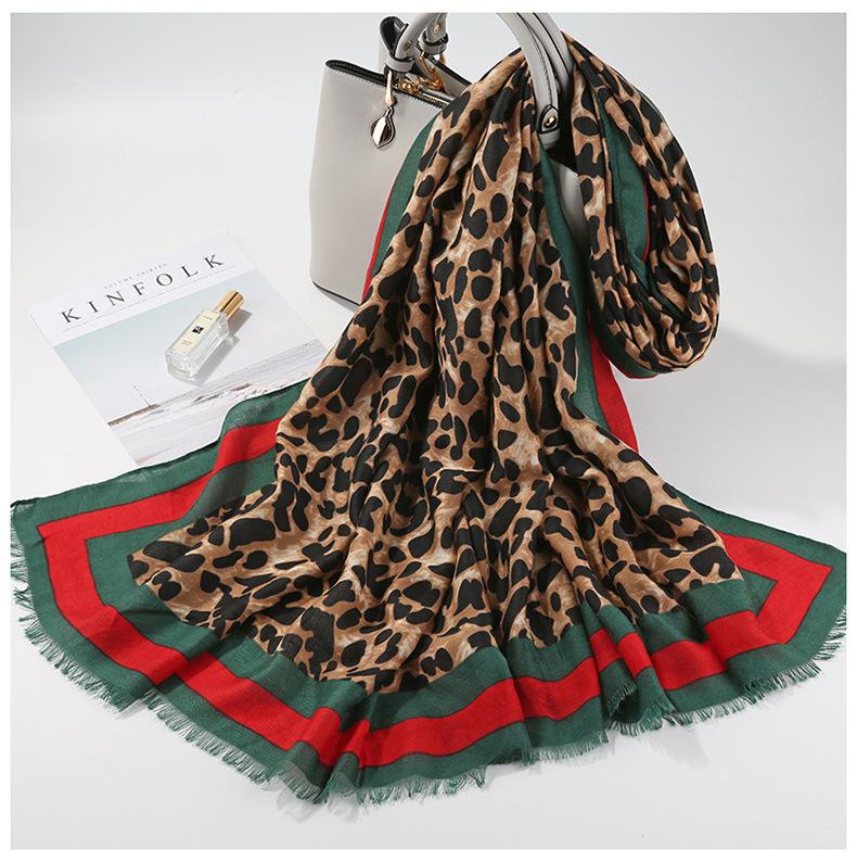 Bufanda Cálida Versátil de Moda Otoño e Invierno Algodón y Lino Mujer Estampado de Leopardo Cuadros Coreana Chal Versátil Bufanda de Seda Explosiones en Vivo