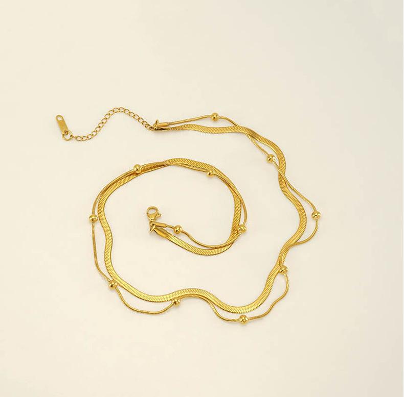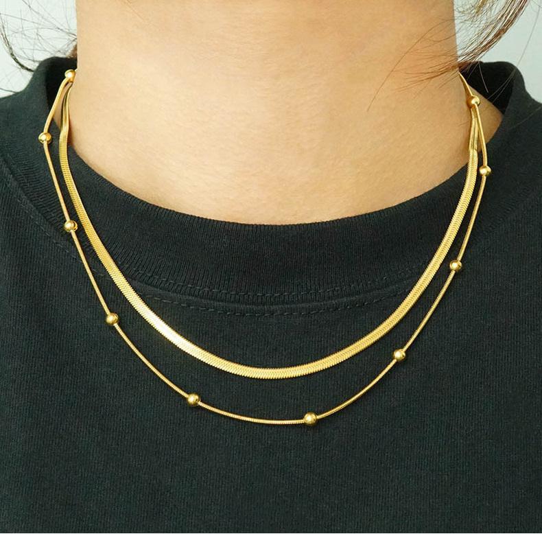 Nuevo collar de acero inoxidable de doble capa transfronterizo con cadena de clavícula de estilo hip-hop, diseño de personalidad europea y americana, joyería al por mayor