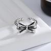 Anillo de Plata Tailandesa Estilo Frío Gato Antiguo Ning Popular en Internet Dulce Cool Diseño Nicho Retro Lazo Anillo de Cuentas Redondas para Mujer