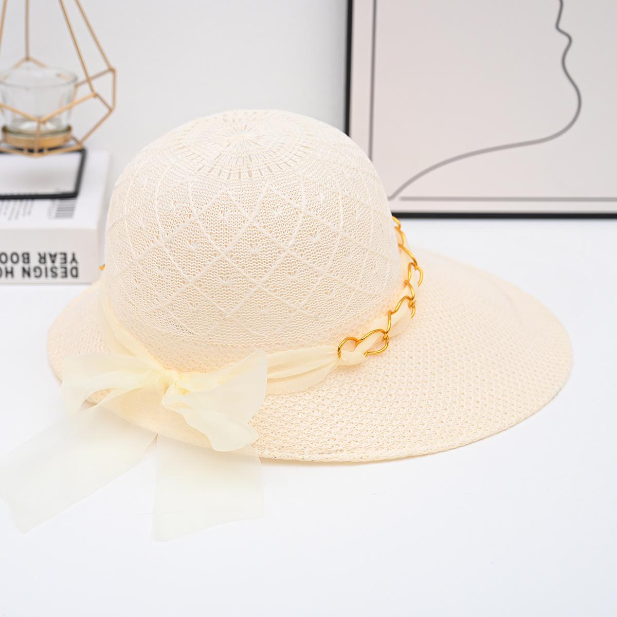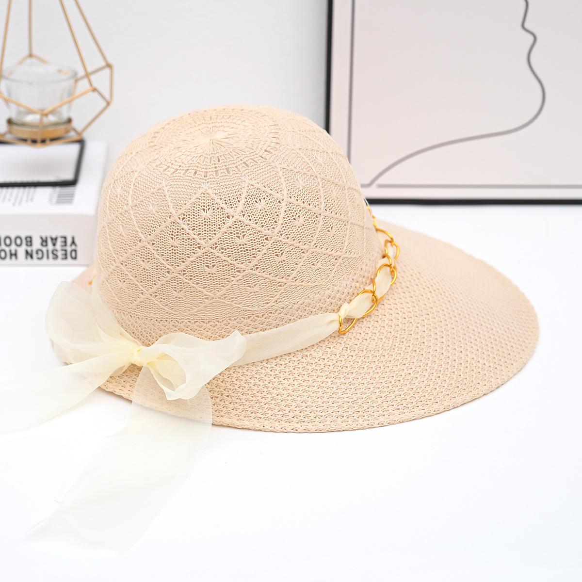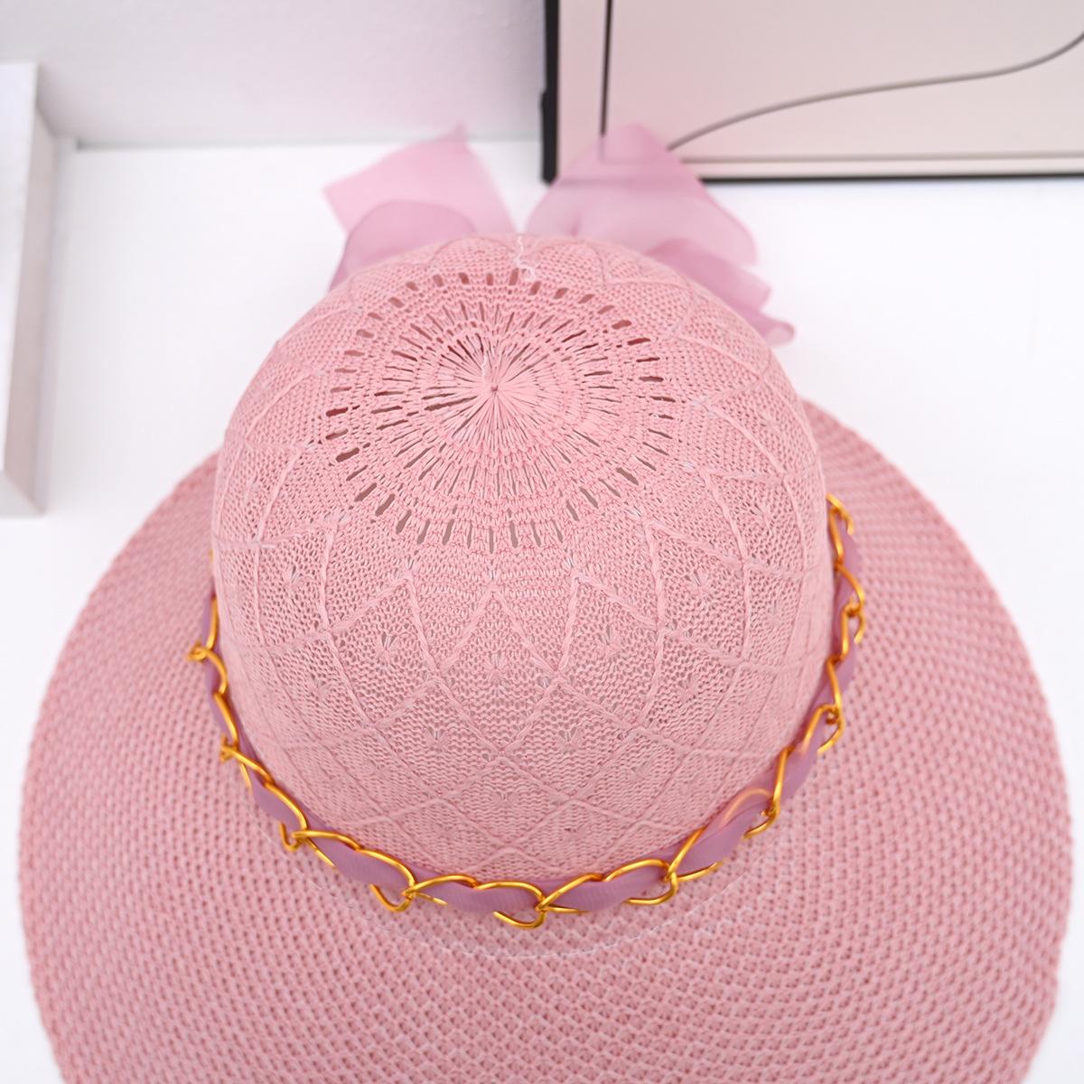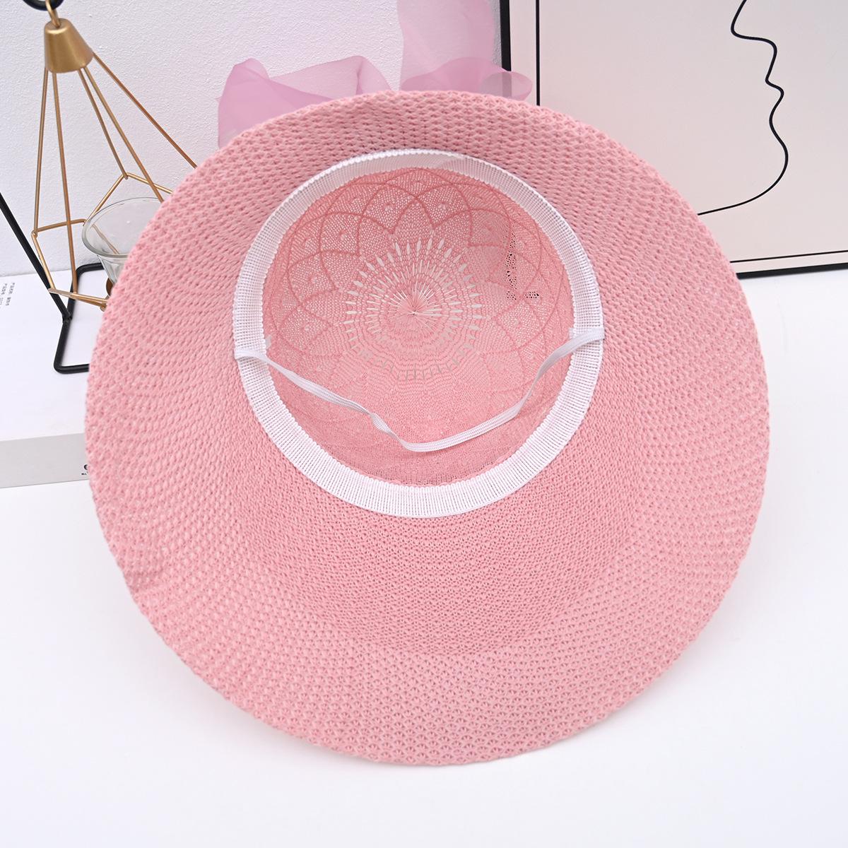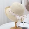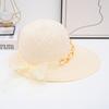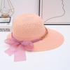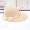 Sombrero de paja de ala grande para mujer, sombrero de protección solar de verano con lazo y cinta, sombrero de playa para la playa, sombrero de paja tejido con visera.