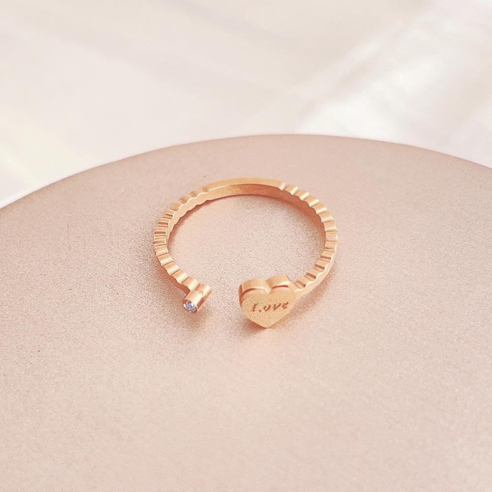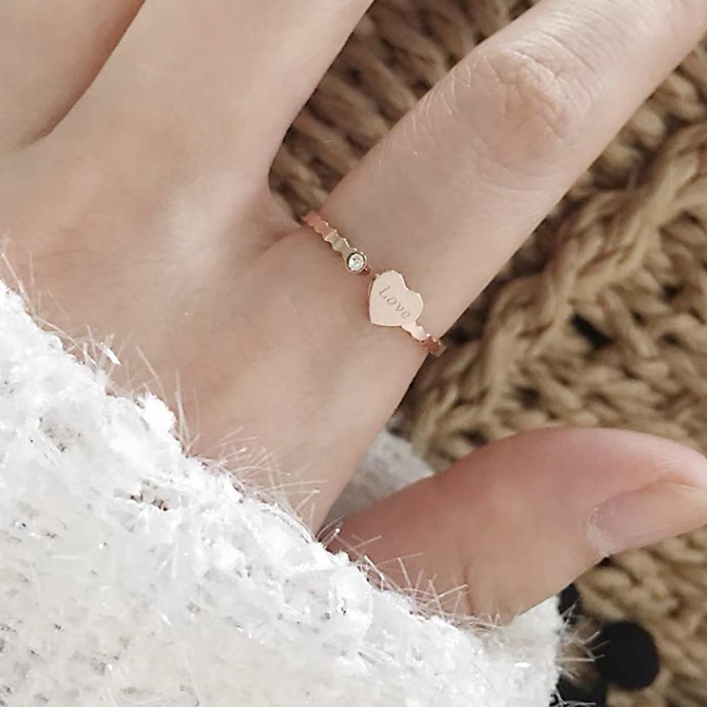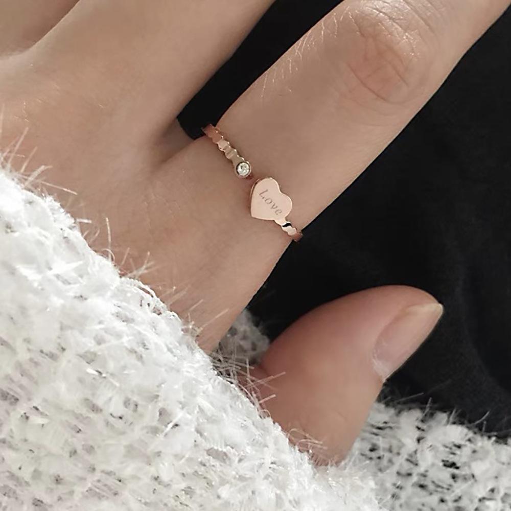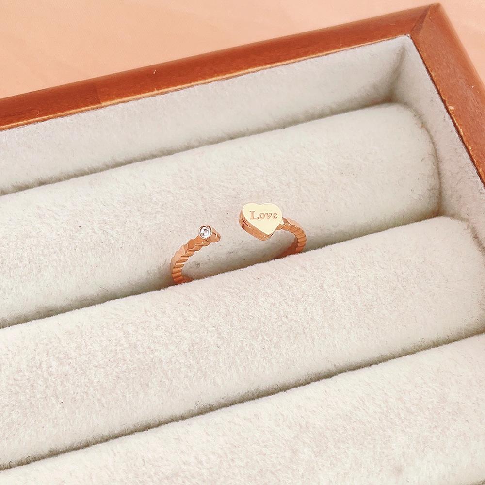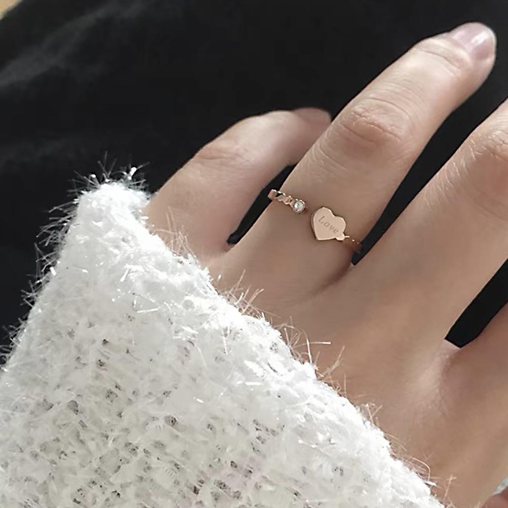 Nuevo anillo abierto de corazón de niña, pequeño y fresco, amor diamante, acero de titanio, simple para hombres y mujeres, anillos para enamorados, fabricantes mayoristas