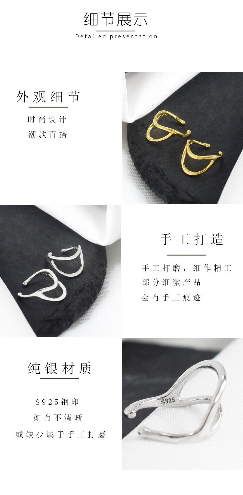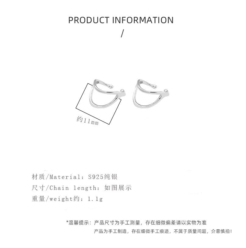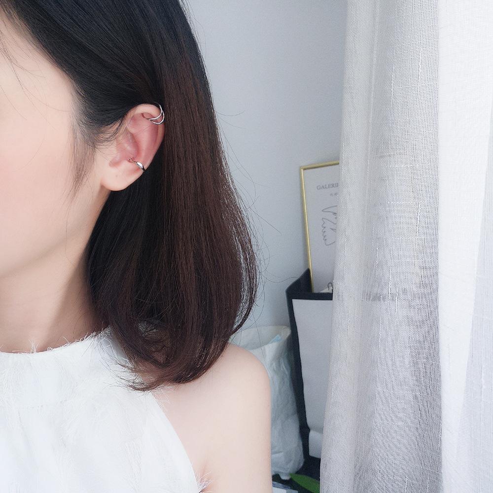 Aretes de Clip para Oreja Perforada con Recorte de Temperamento Plata Esterlina S925 Aretes Estilo Coreano Brillantes Clip para Hueso de la Oreja Aretes Personalizados para Mujeres