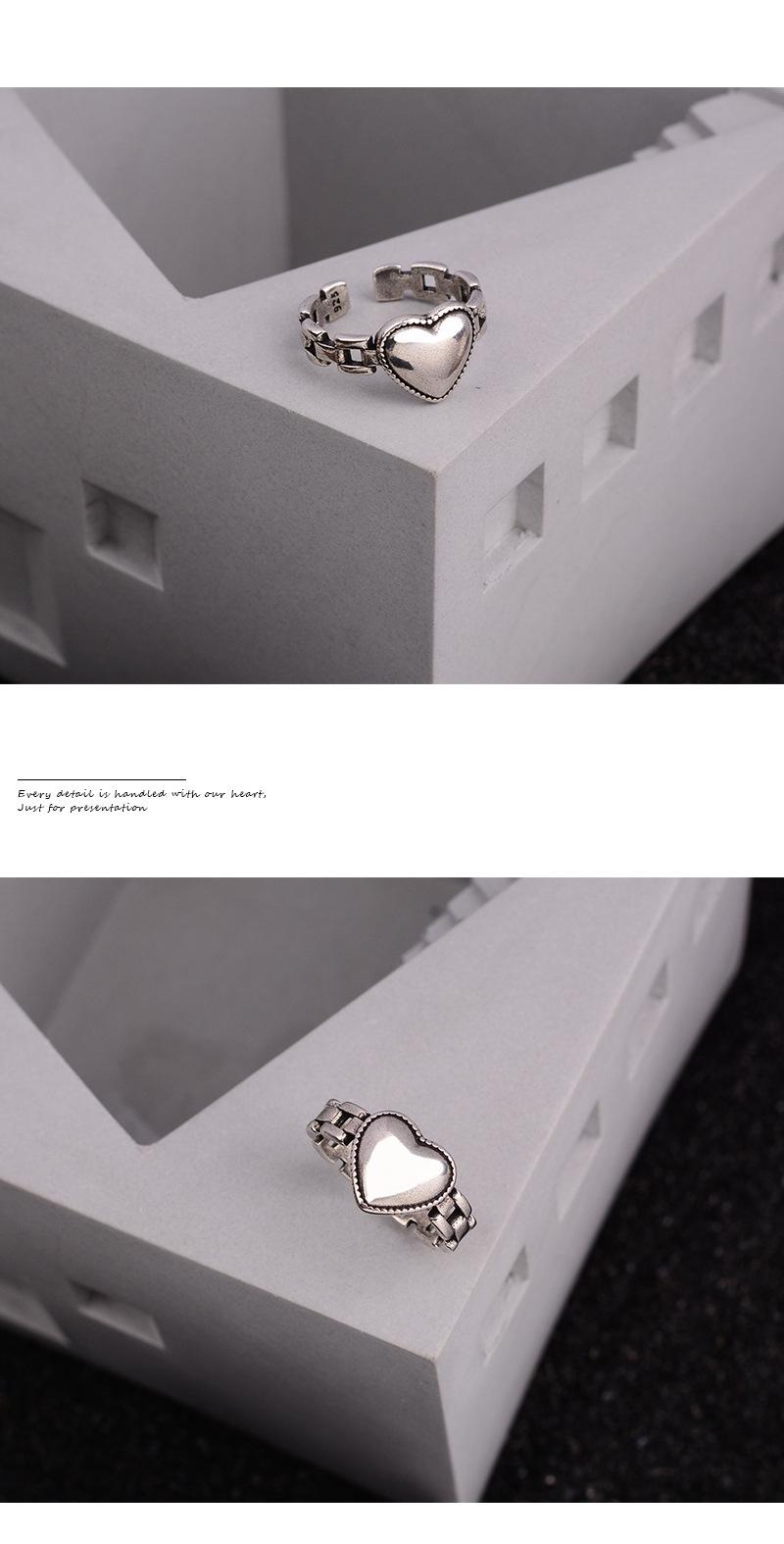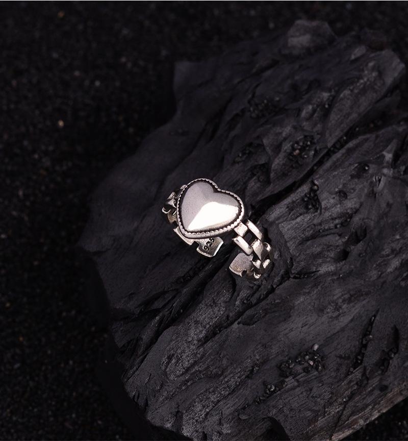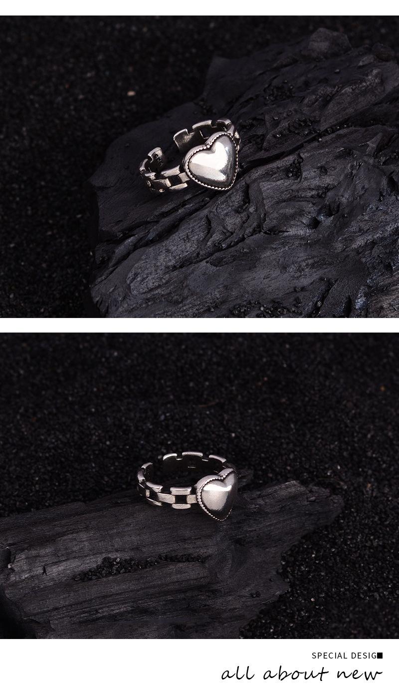 Anillo de cadena de amor tridimensional angustiado con sentido de diseño de nicho, anillo de dedo índice abierto de personalidad de lujo ligero de alta gama retro femenino