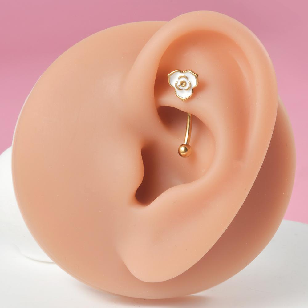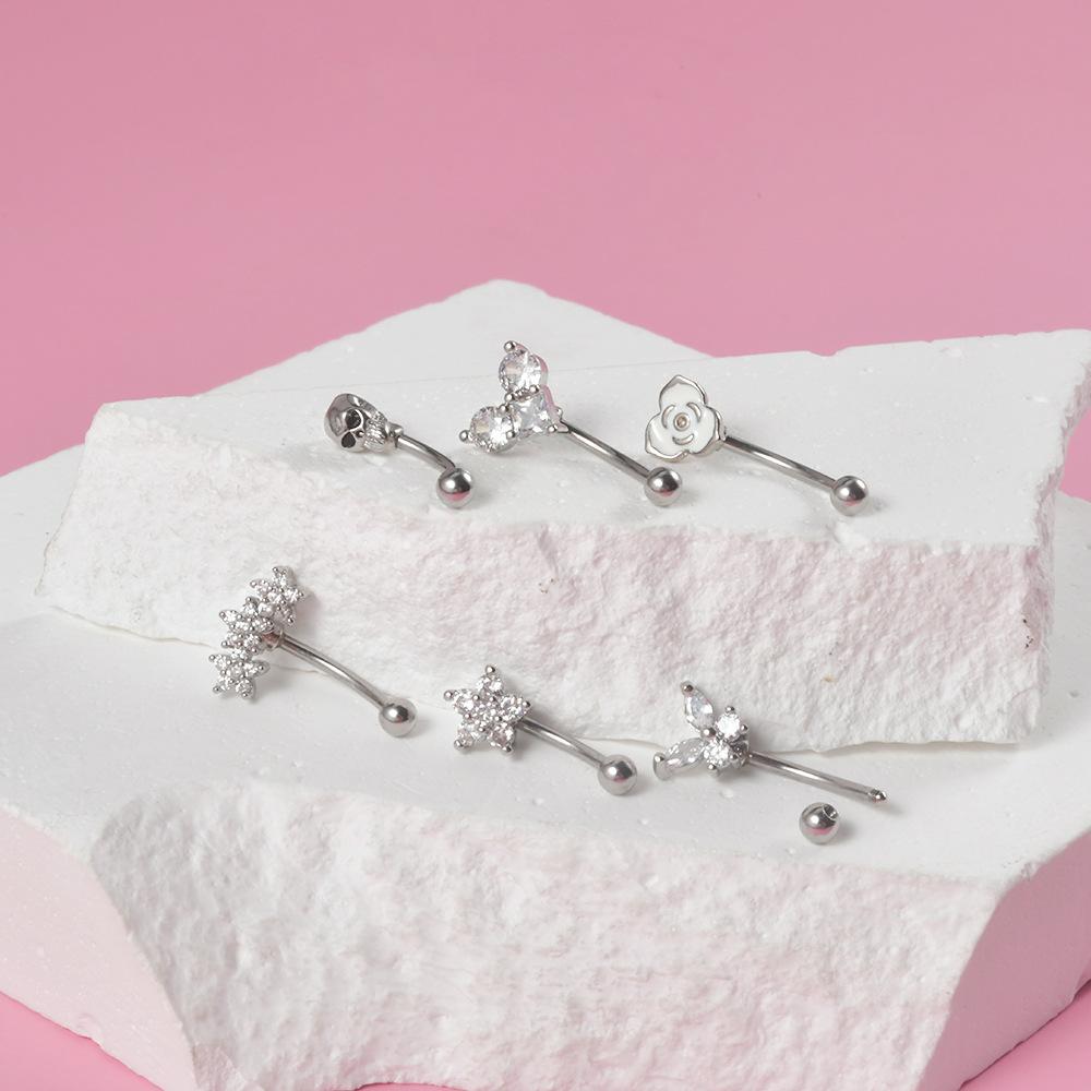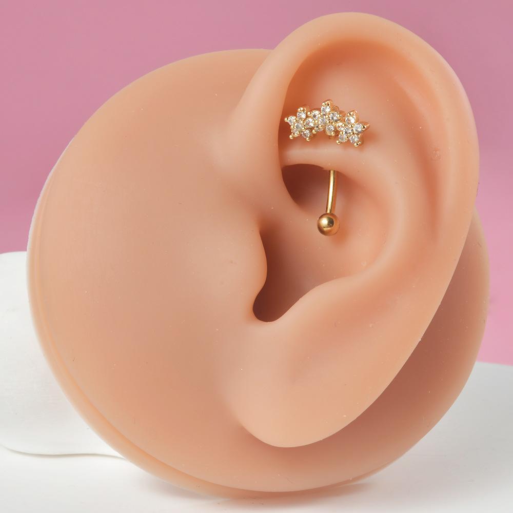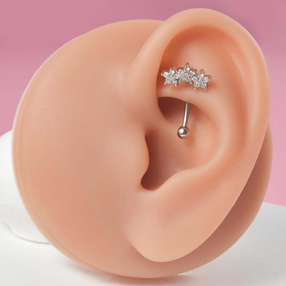 .Nombre: Aretes nuevos de rosca externa de flor de mariposa transfronteriza, tachuelas para el hueso de la oreja, aretes de circonita en forma de corazón, aretes piercing de rosca externa