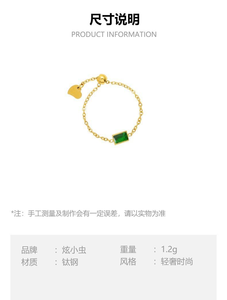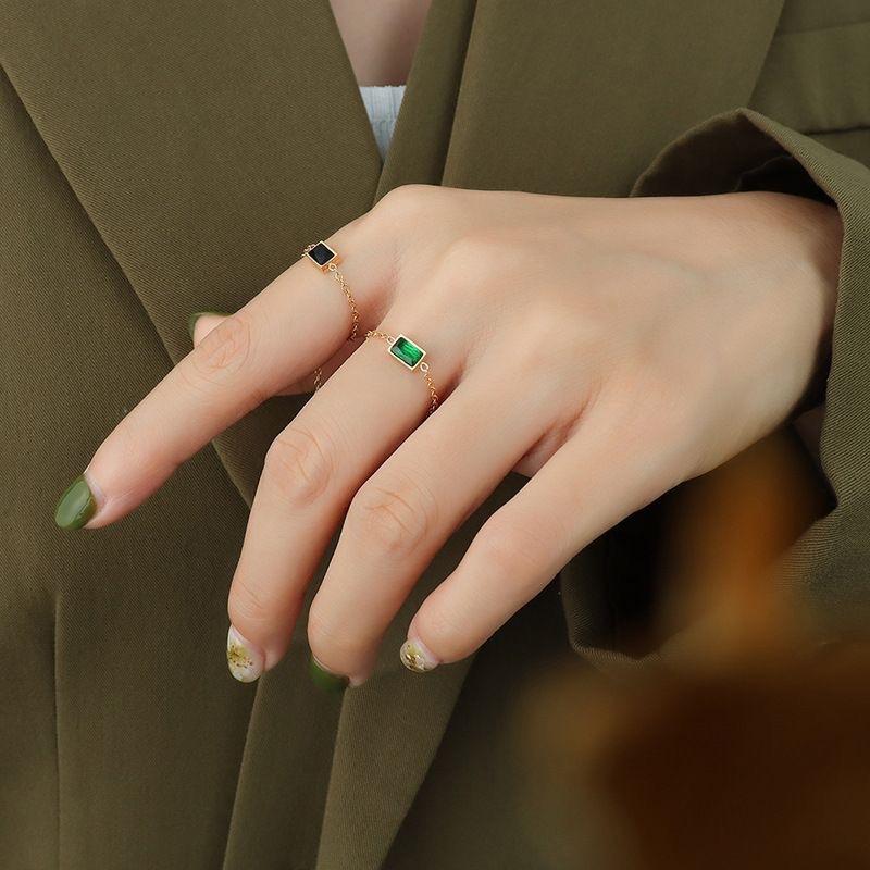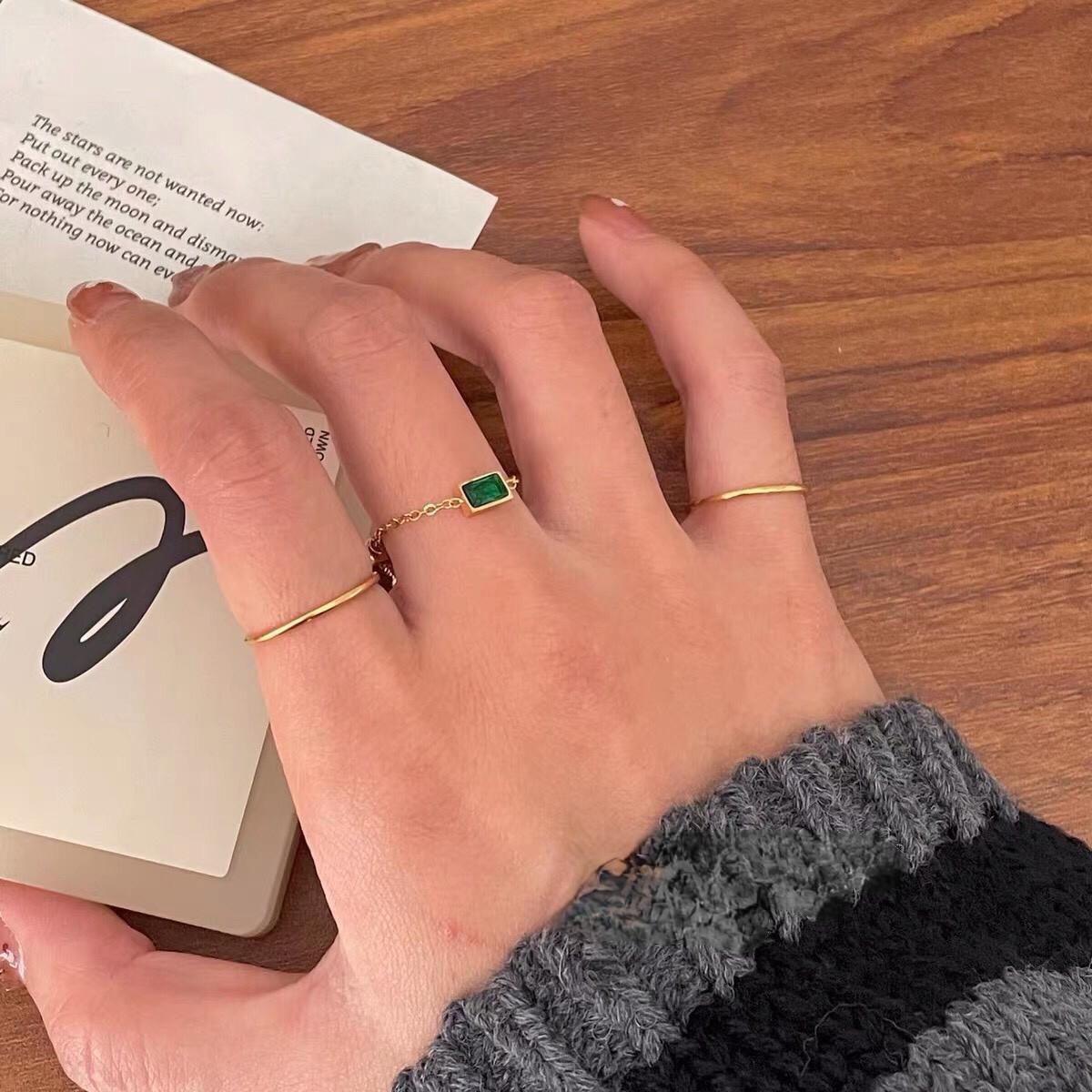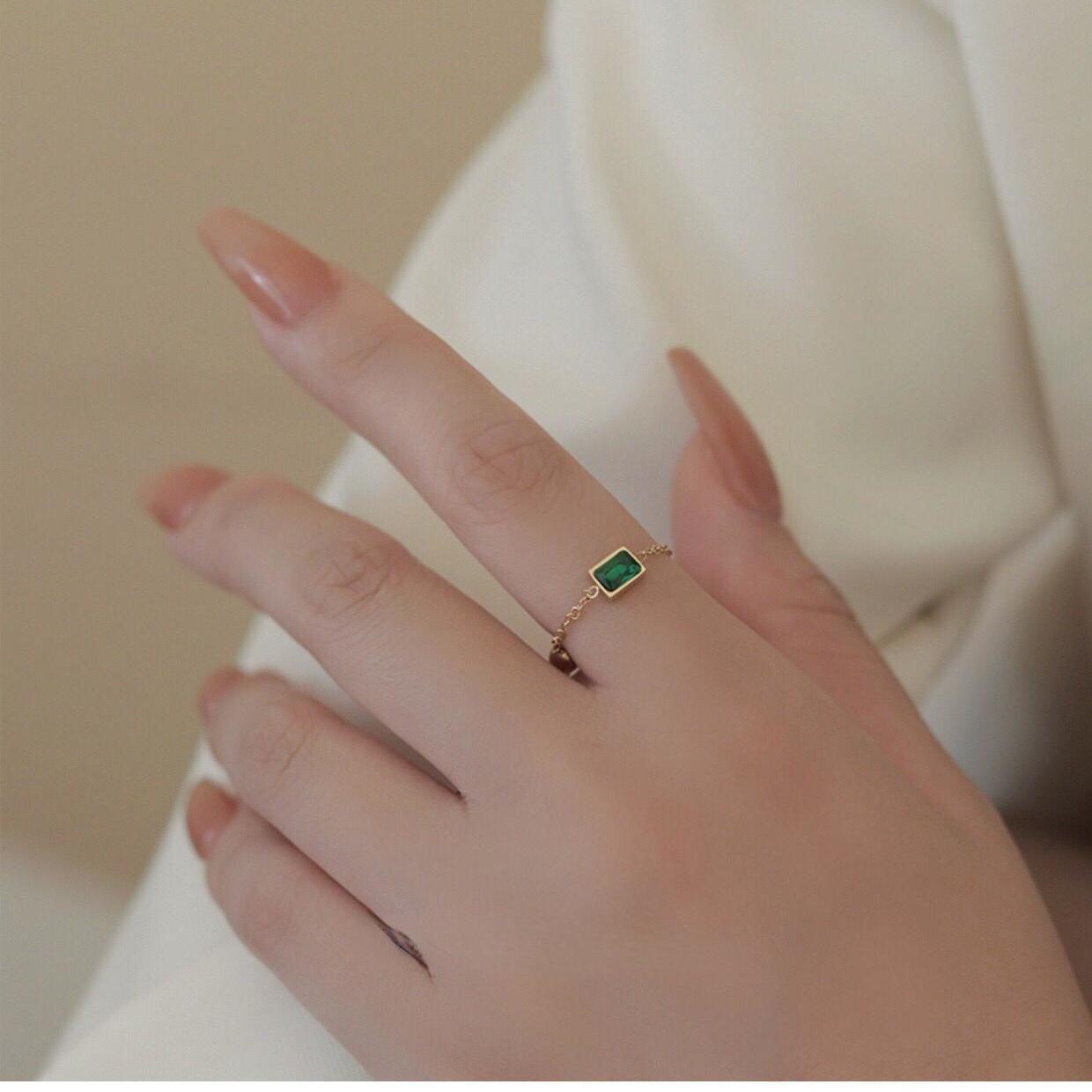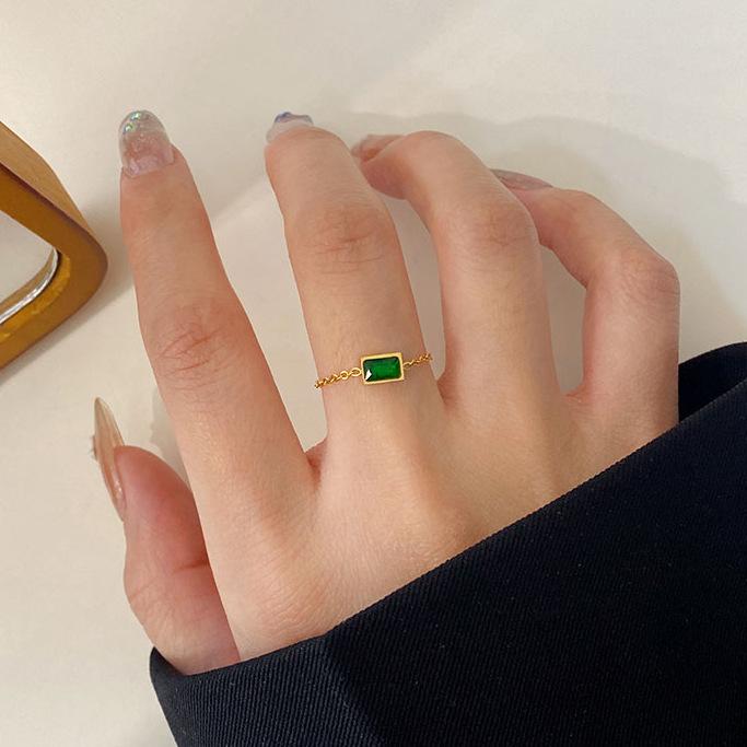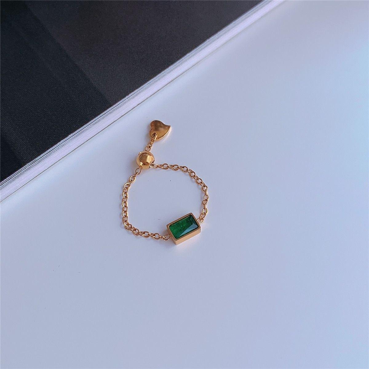 Anillo de cadena de circonita verde nuevo 2023, anillo de dedo retro de lujo ligero de alta calidad, anillo de tracción ajustable