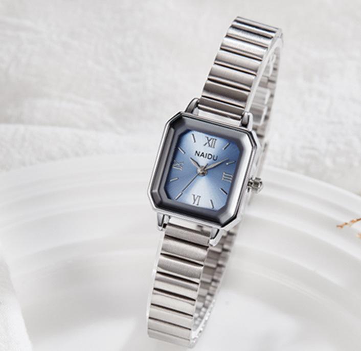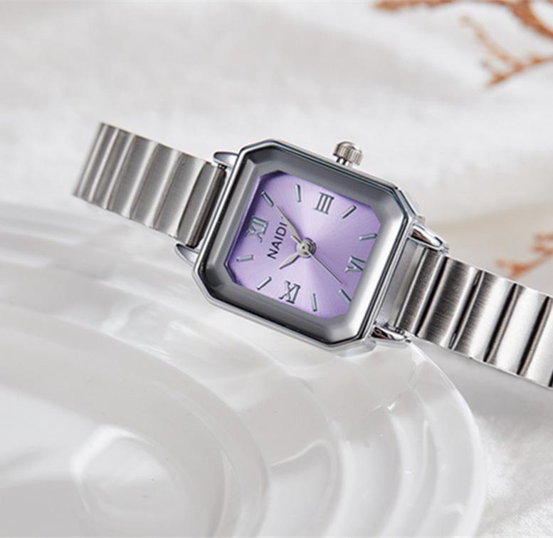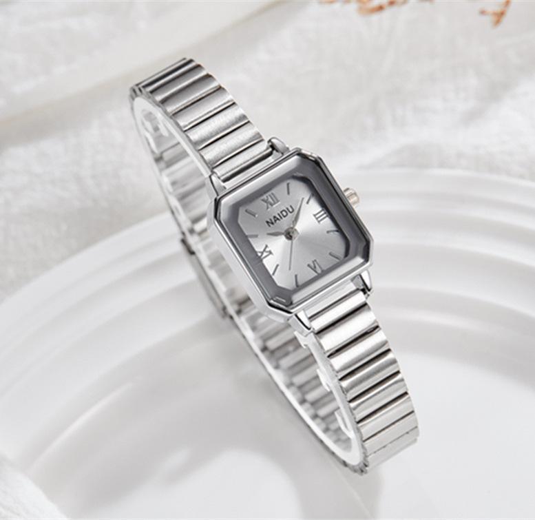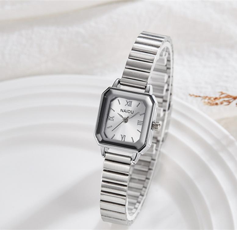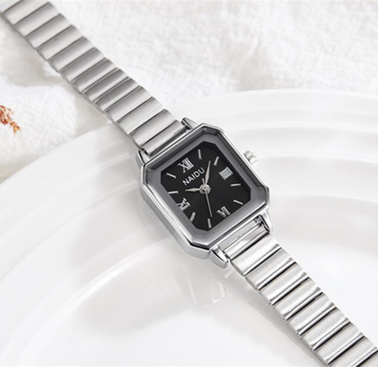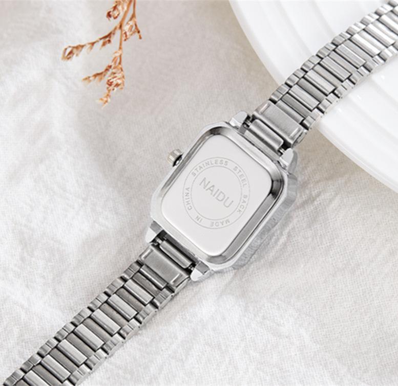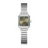 Reloj de pulsera de acero de aleación cuadrada con correa de acero, reloj de cuarzo, reloj de moda informal con drenaje en vivo, fabricantes mayoristas