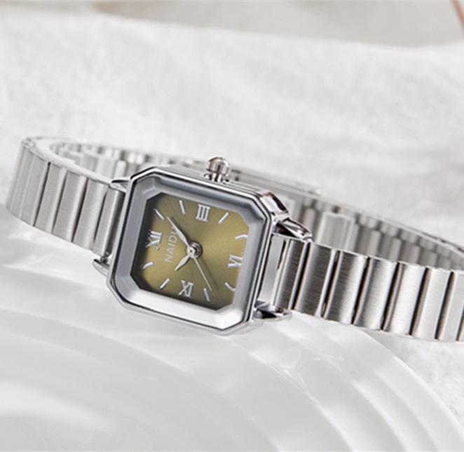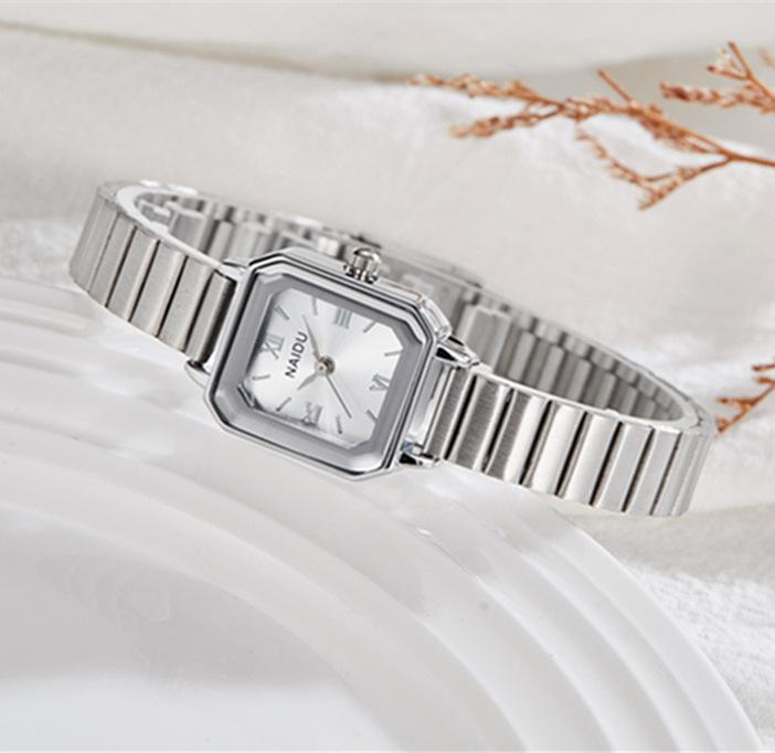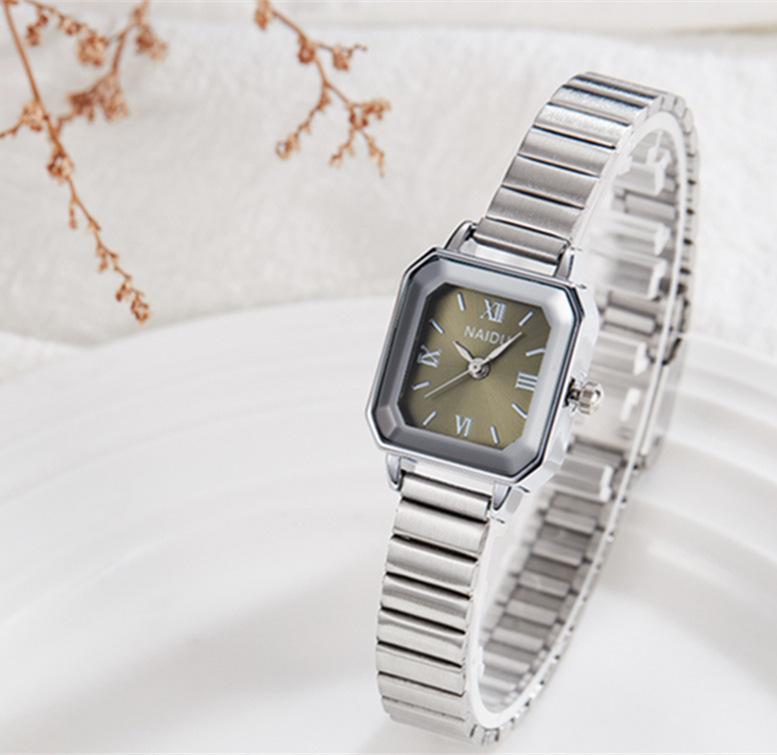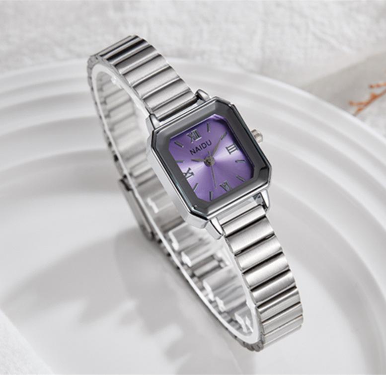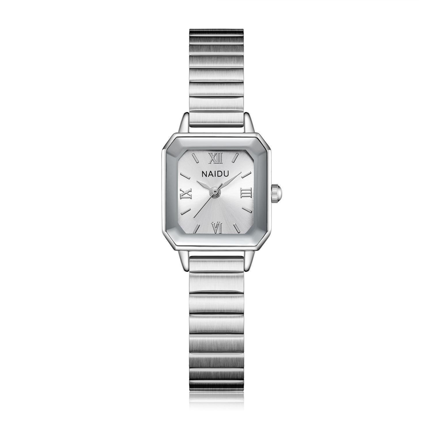 Reloj de pulsera de acero de aleación cuadrada con correa de acero, reloj de cuarzo, reloj de moda informal con drenaje en vivo, fabricantes mayoristas