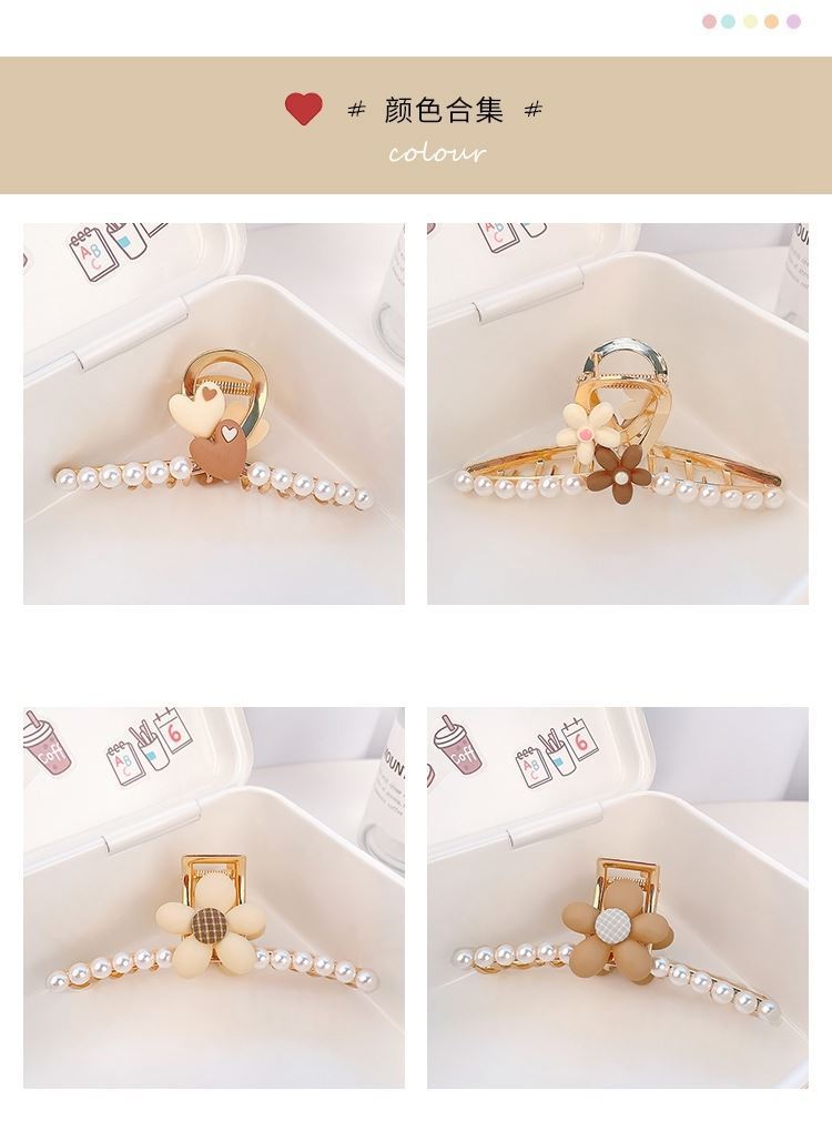 1# two flowers cross grip clip, 2# two love cross grip clip, 3# brown flower word clip, 4# beige flower word c...