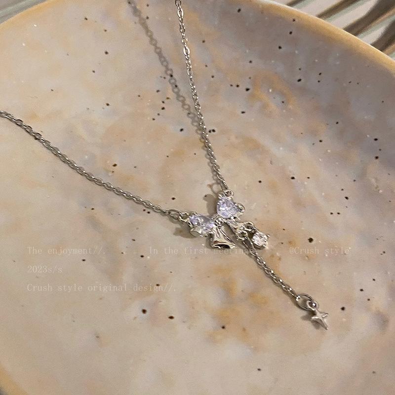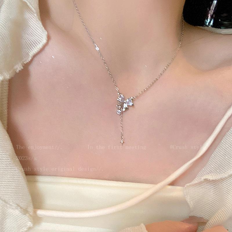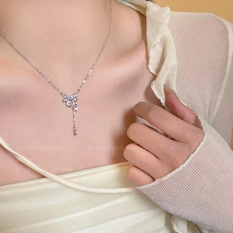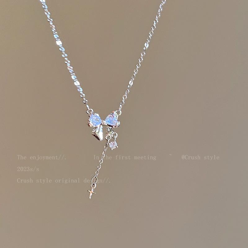 Collar con borla de circonita y lazo para mujer, accesorios de temperamento de nicho de lujo ligero de verano 2023, nueva cadena de clavícula de moda
