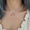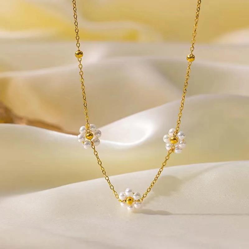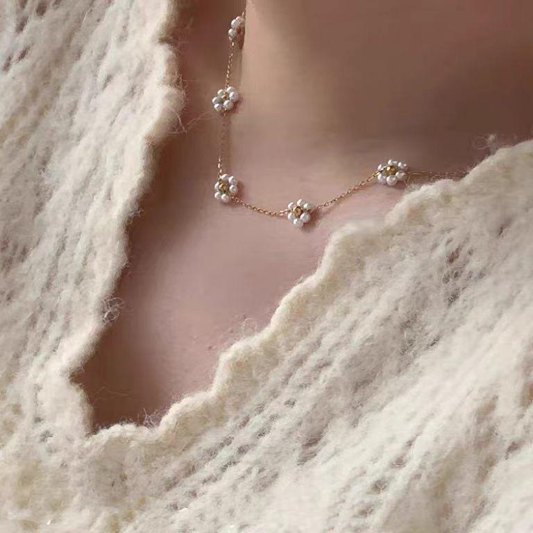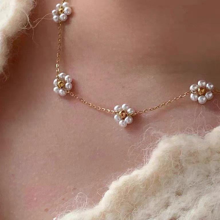 Collar de Flor de Perla sin Color de Acero de Titanio Estilo Mori Fresco Solapado Cadena Fina Estilo Coreano Sencillo Cadena Corta para Clavícula