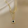 Colgante de gemas de doble capa con diseño de nicho de moda transfronteriza al por mayor de acero de titanio chapado en oro de 18 quilates con forma de hueso de serpiente, estilo retro frío