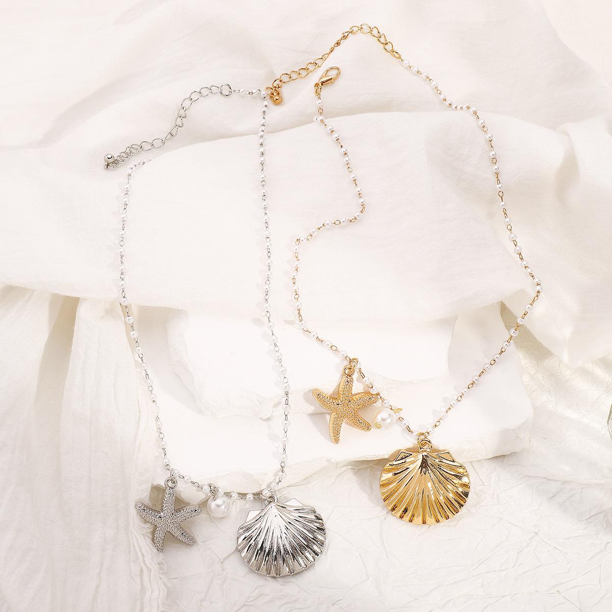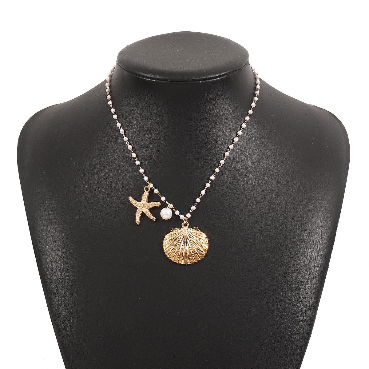 N12010 Nuevo Collar de Perlas Serie Marina Transfronteriza Lujo Ligero Sentido Francés de Alta Gama Cadena Clavicular Concha Estrella de Mar