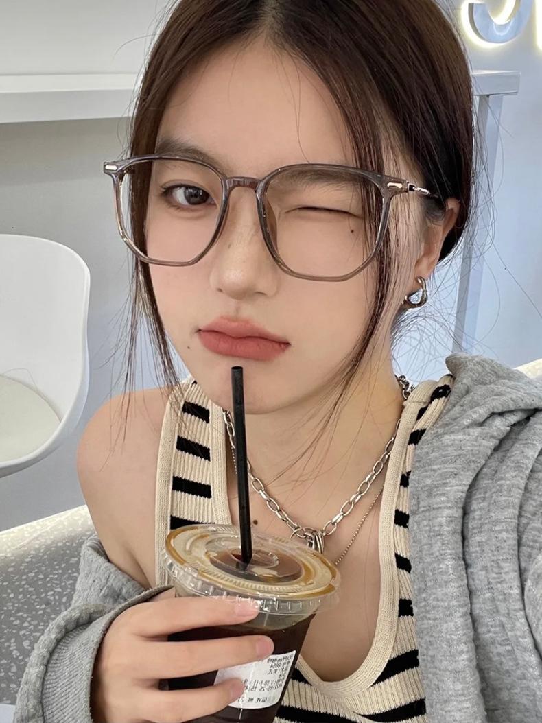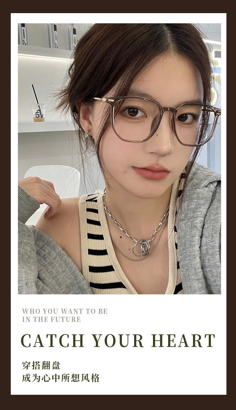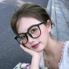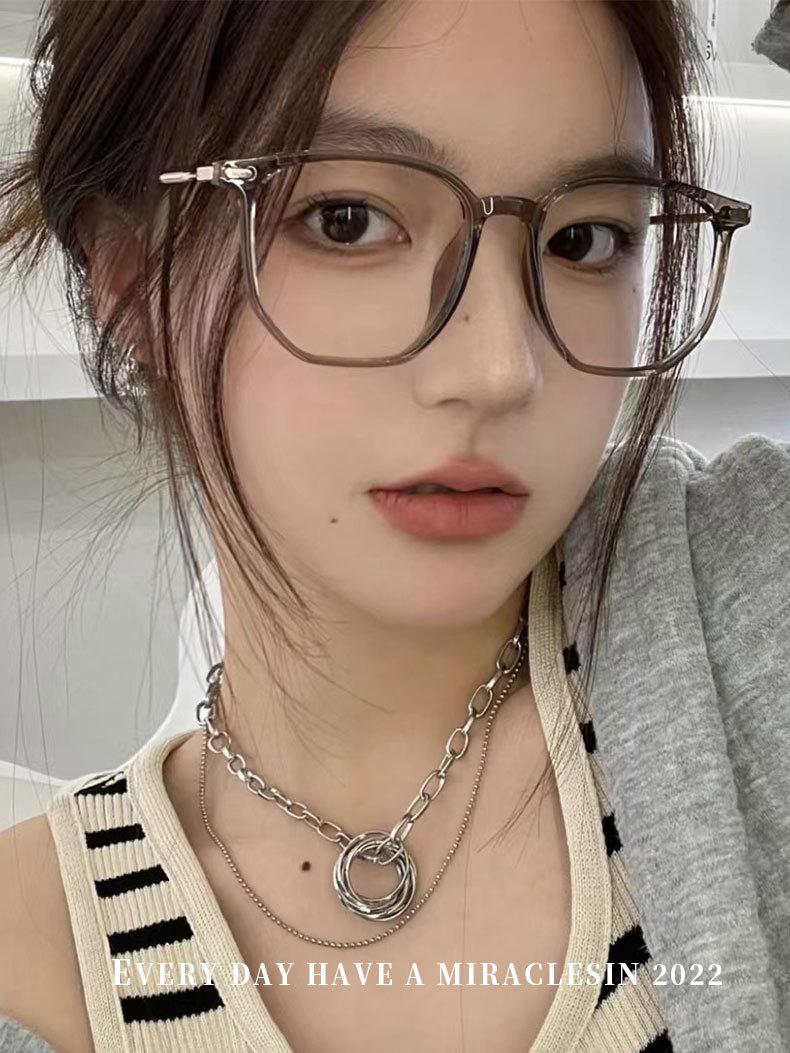 Las gafas de miopía ultraligeras de color marrón frío para mujer se pueden equipar con grados, artefacto de belleza simple, cara redonda, gafas lisas, marco elegante, marco de gafas de moda.