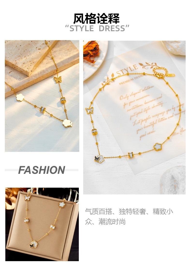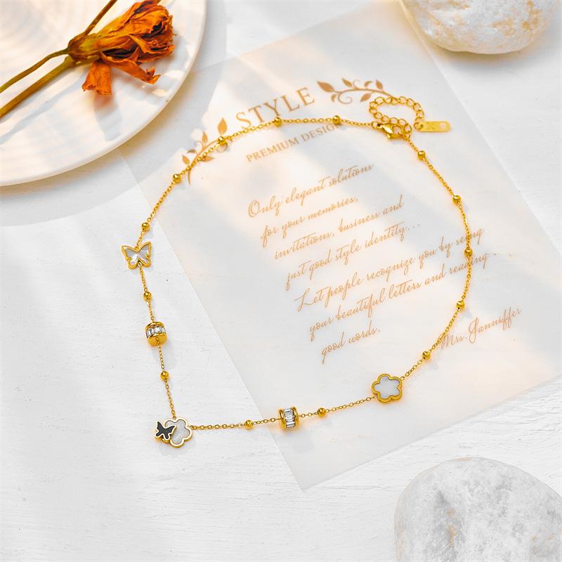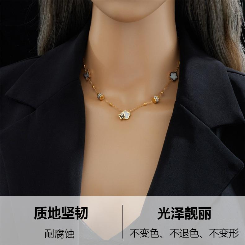 Moda Europea y Americana Nicho Concha Blanco y Negro Mariposa Flor Borla Collar Temperamento de Alta Gama Acero Titanio Cadena Clavícula