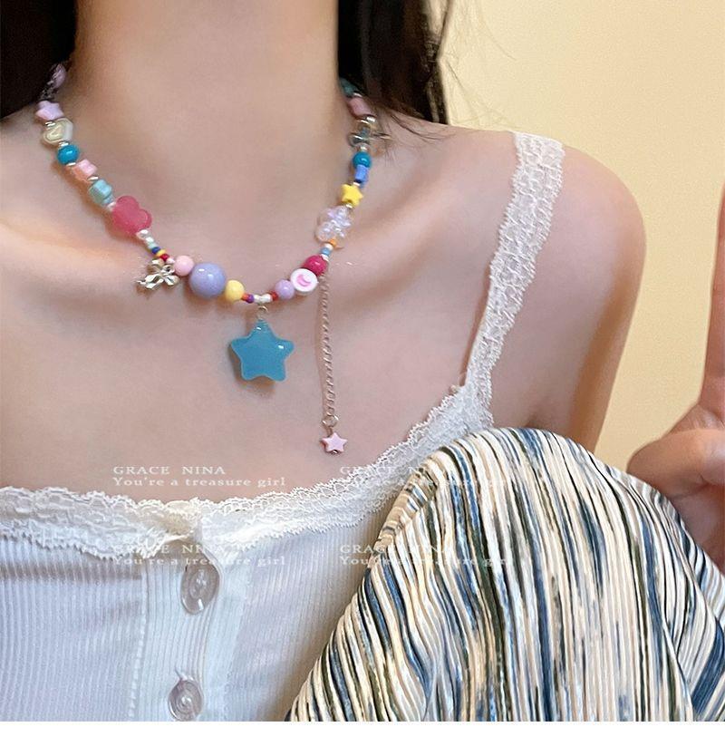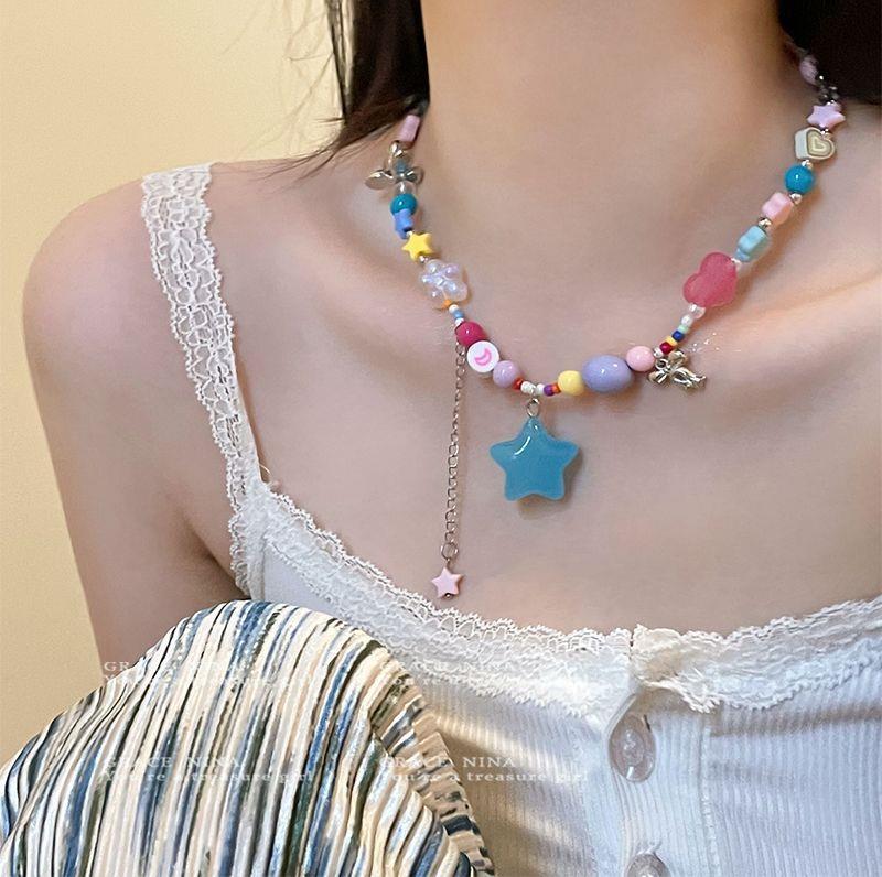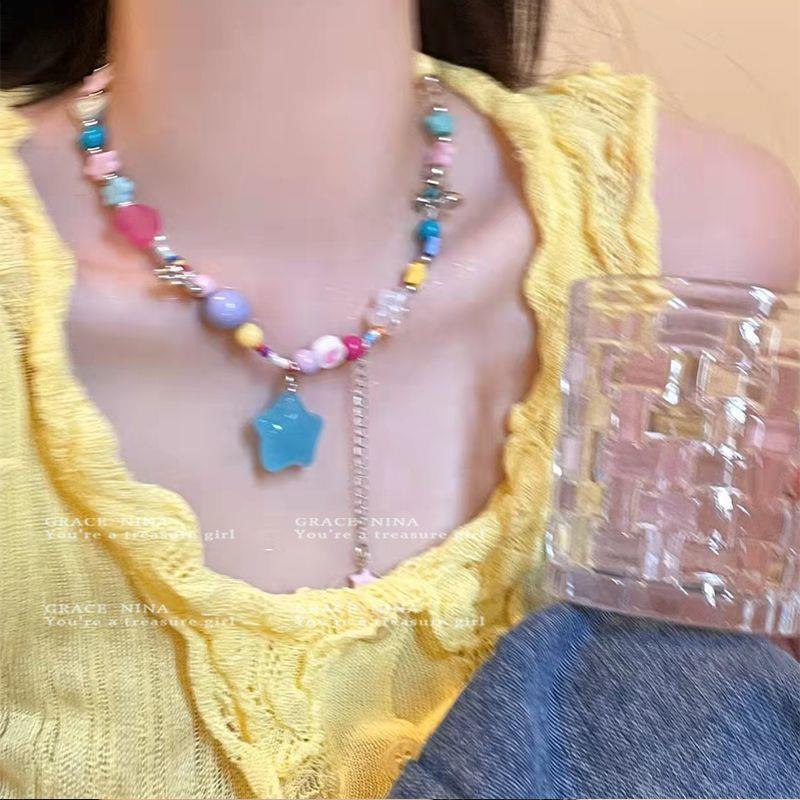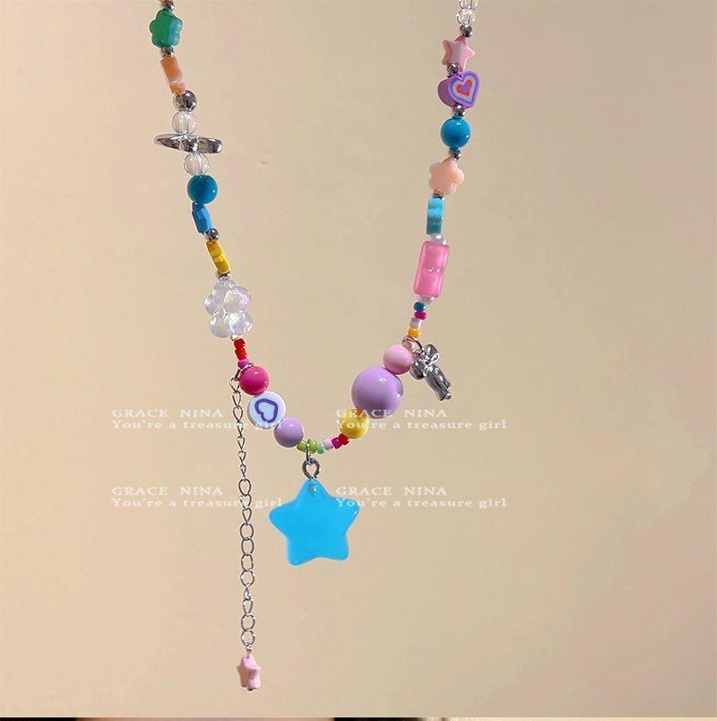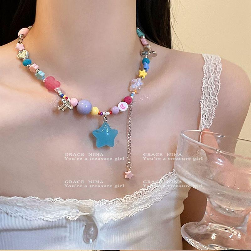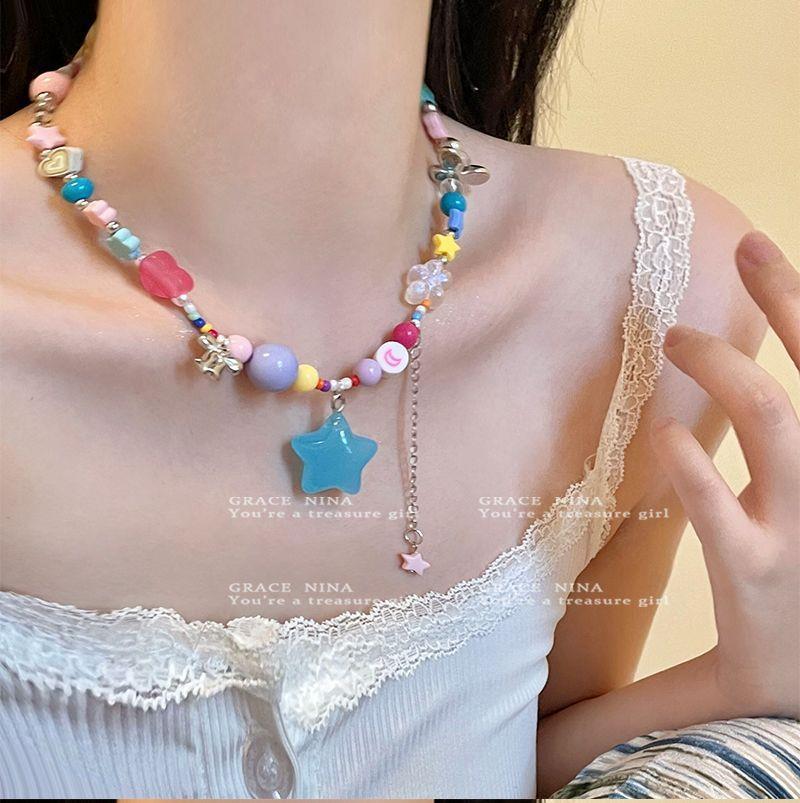 ¡Dongju chica dopamina! Collar de estrella de cuentas coloridas para mujer 2023 nueva cadena de clavícula personalizada accesorios dulces y geniales
