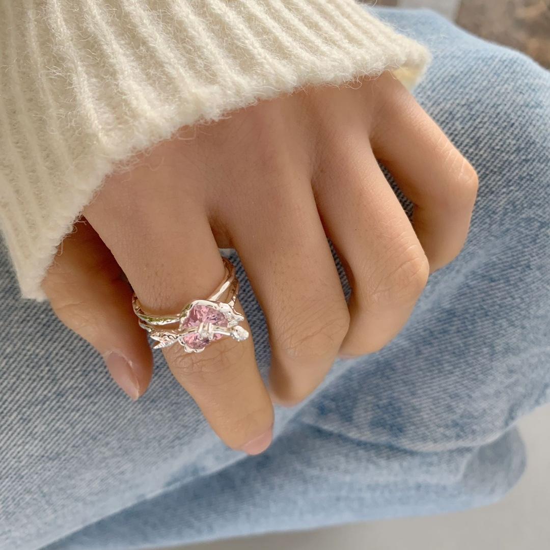 Anillo de amor rosa corazón para niña anillo femenino 2024 Nuevo Anillo moda anillo traspasa-corazones para pareja para novia