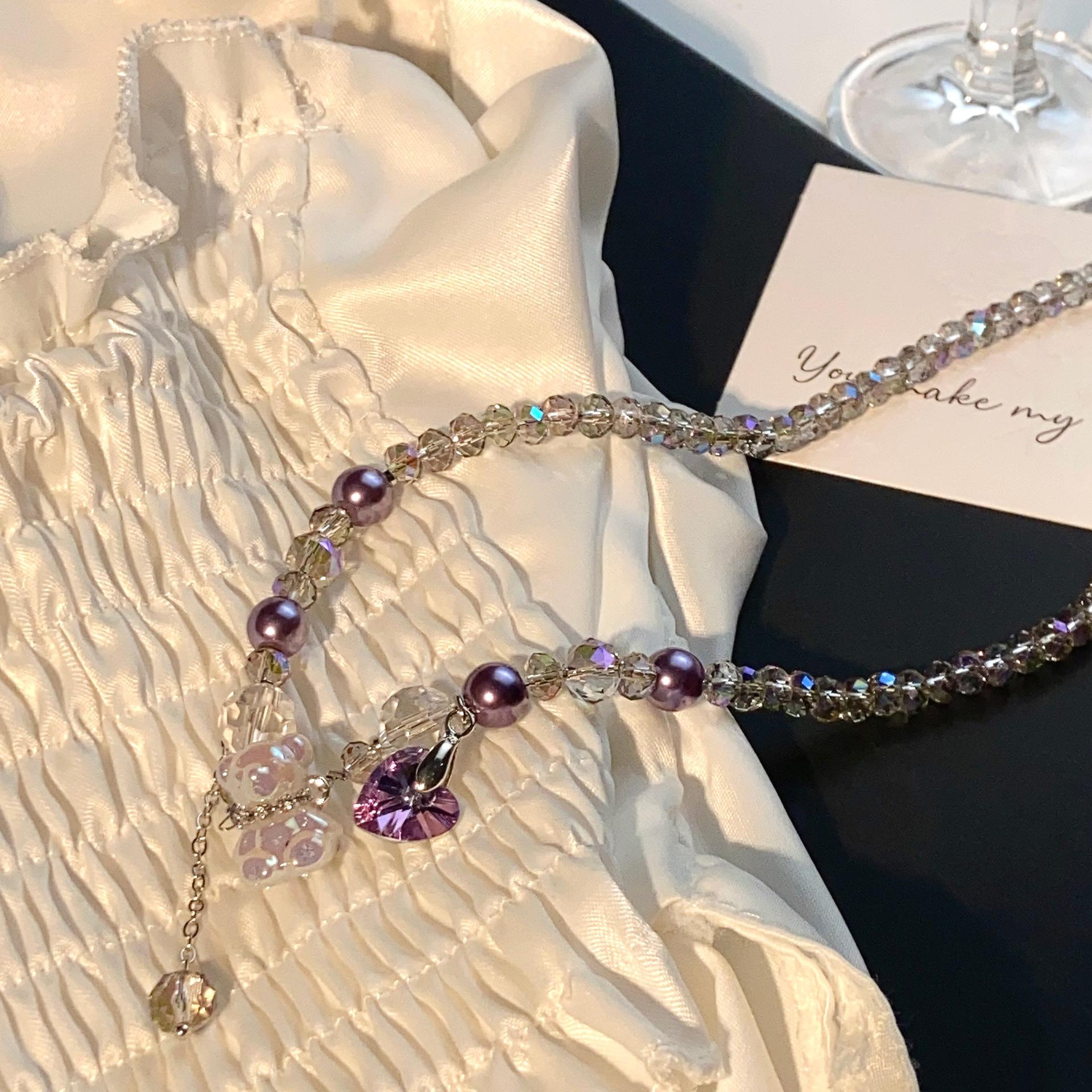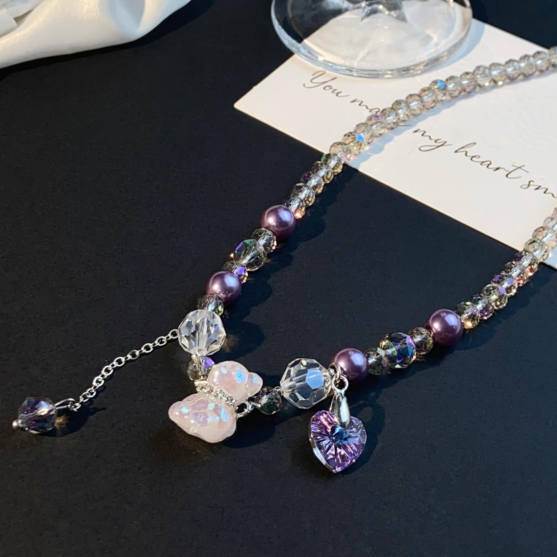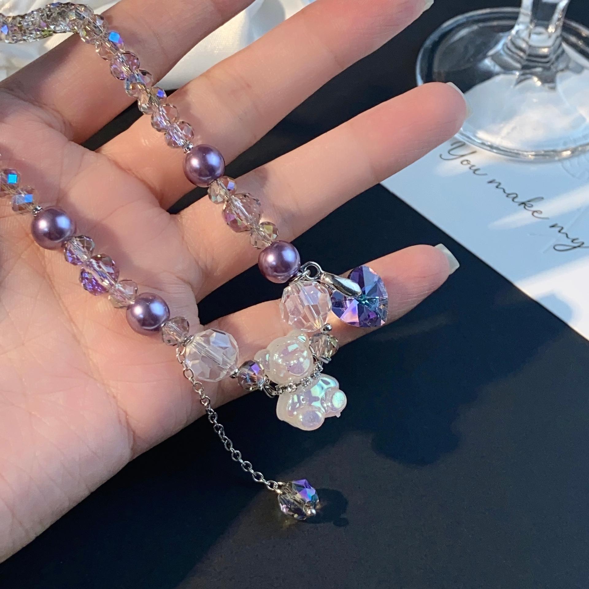 Collar de cuentas de oso de amor de colores, estilo dulce y fresco, para mujer, de verano, combina con todo, de alta gama, cadena ligera de lujo con nicho.
