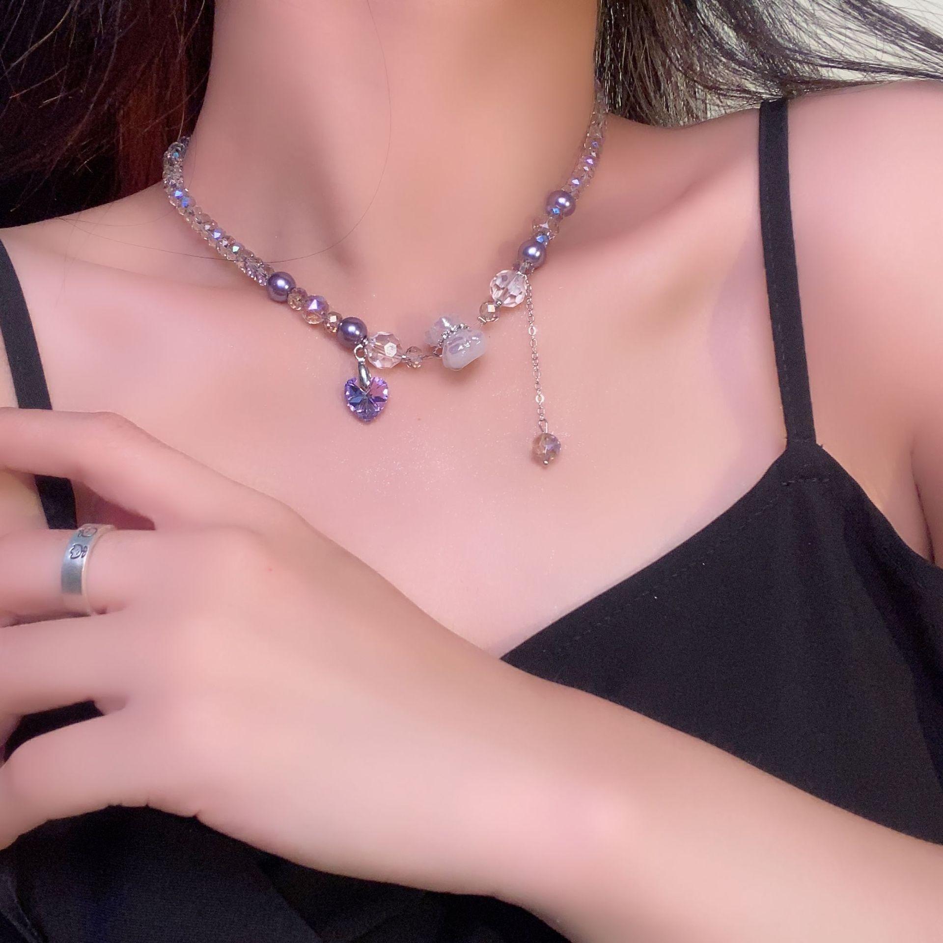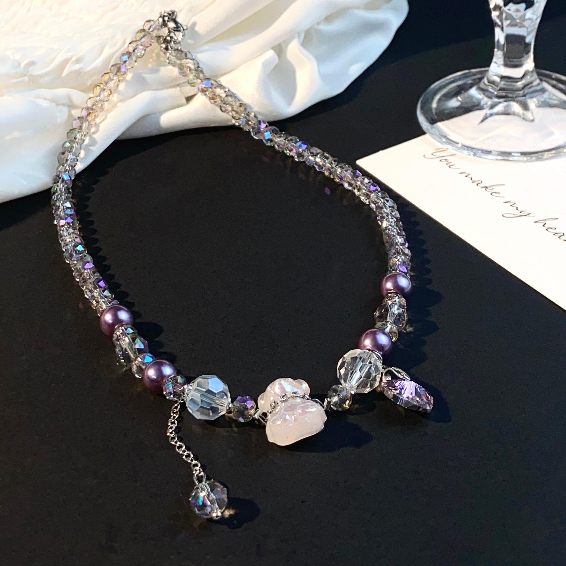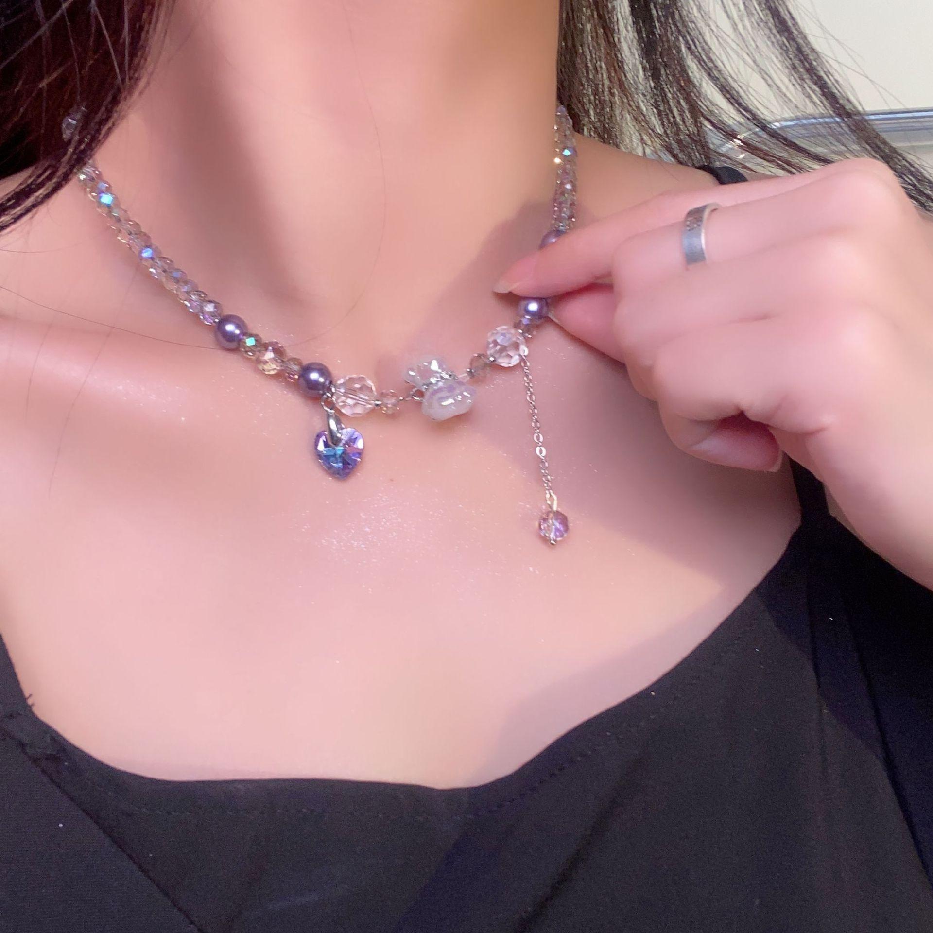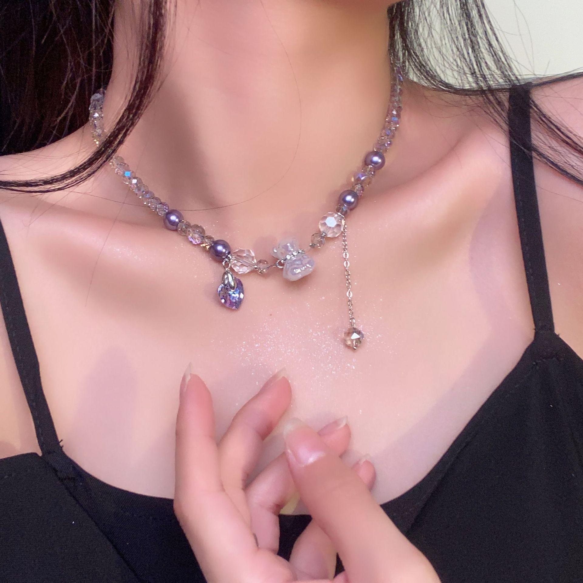 Collar de cuentas de oso de amor de colores, estilo dulce y fresco, para mujer, de verano, combina con todo, de alta gama, cadena ligera de lujo con nicho.