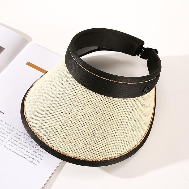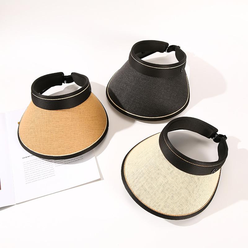 Sombrero de paja con protección solar, novedad de verano 2023, estilo coreano, para exteriores, con ala extendida y protección UV, ajustable en la parte superior vacía.