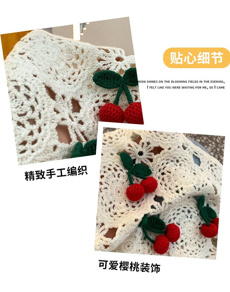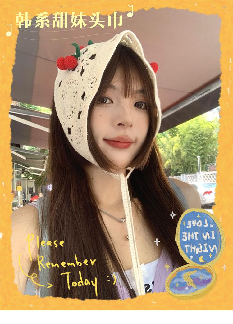 Bufanda Triangular Dulce y Linda Estilo Coreano ins para Mujer Dulce Cool Cereza Calado Tejida a Mano Banda para el Cabello Cinta Dopamina
