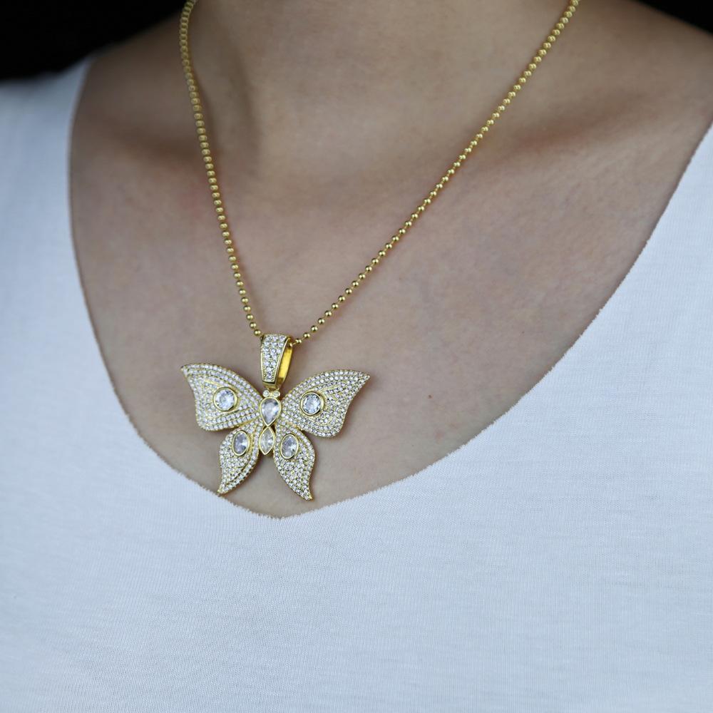 Collar con colgante de circonita y mariposa grande con nuevo animal de hip-hop transfronterizo, joyería de tendencia de Amazon, una generación de cabello