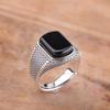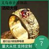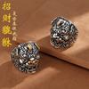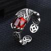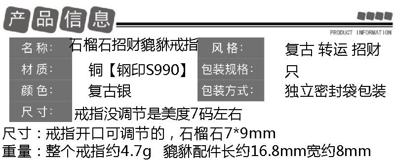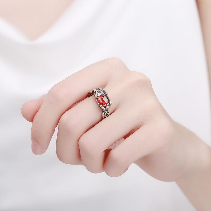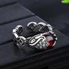 Anillo Pixiu de Moneda de Cobre Retro Original Granate Plata Tailandesa Retro Personalizado Moderno Estilo Literario Anillo Abierto para Hombres y Mujeres