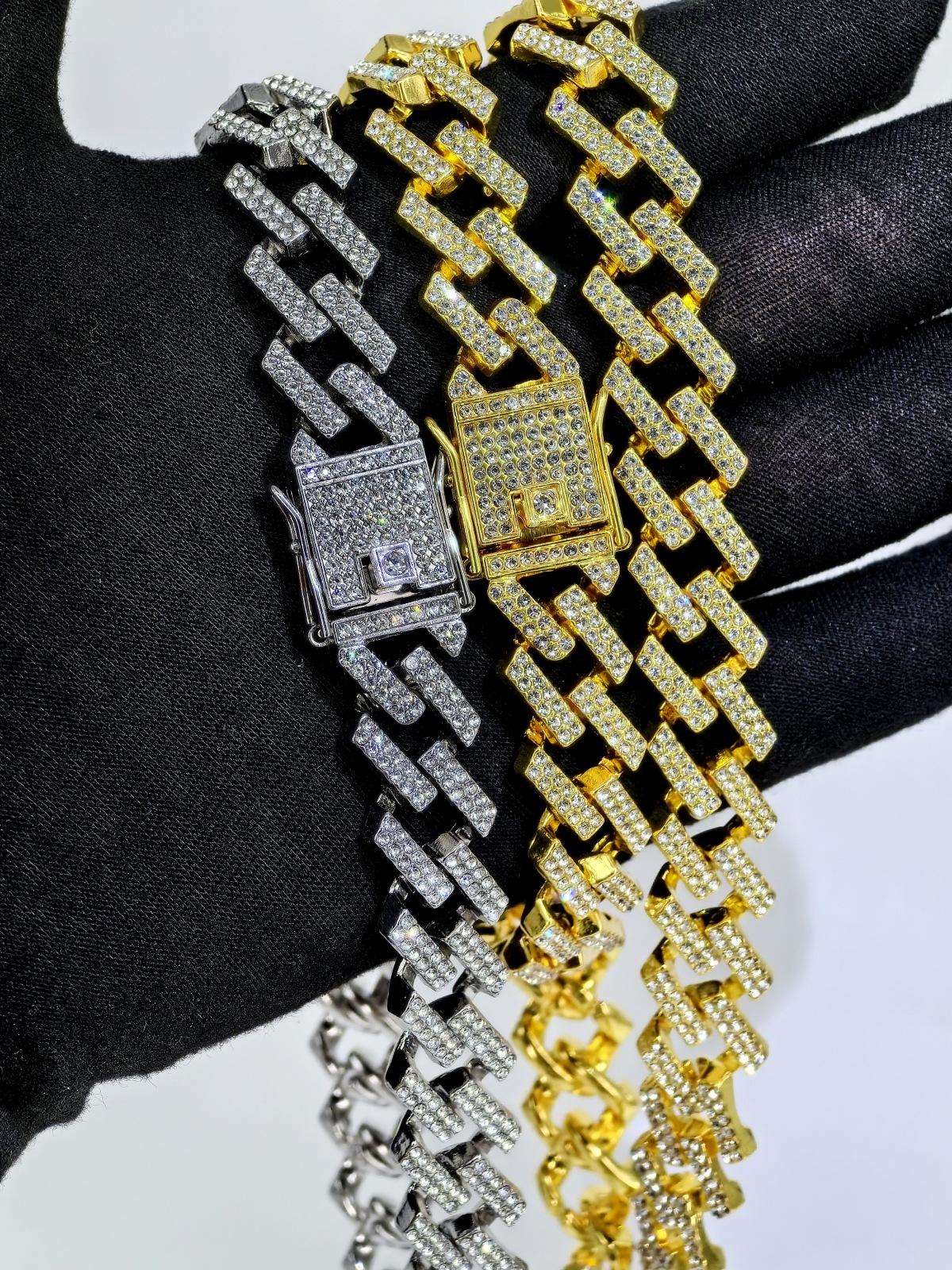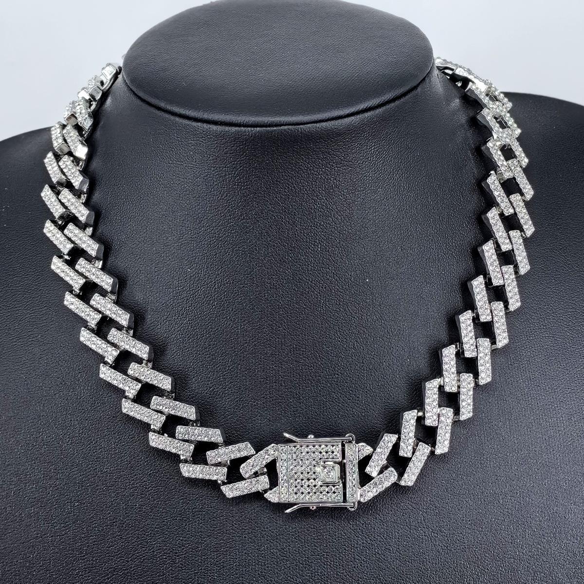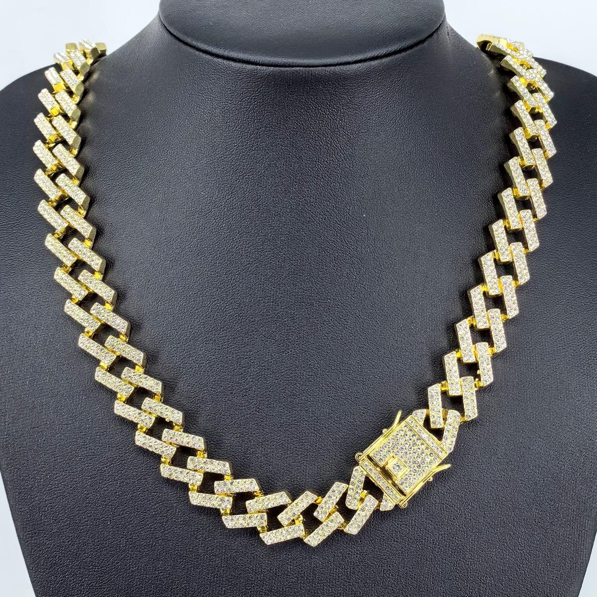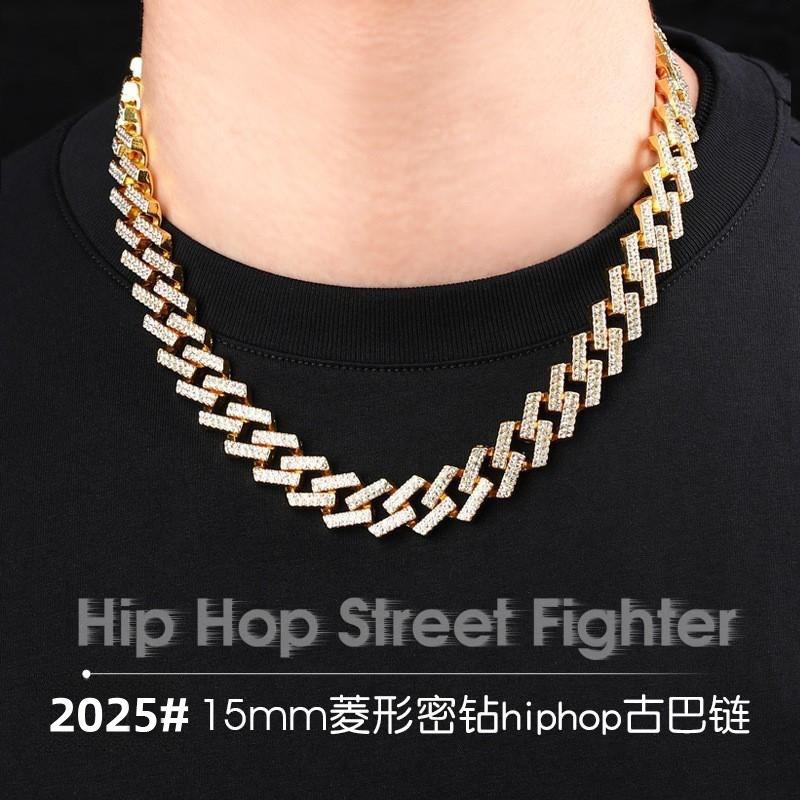 Collar Europeo y Americano de Aleación para Hombre y Mujer con Diamantes de 15 mm de Perforación Completa de Alta Gama, Moderno y Elegante, Cadena Cubana Hip-Hop Rap