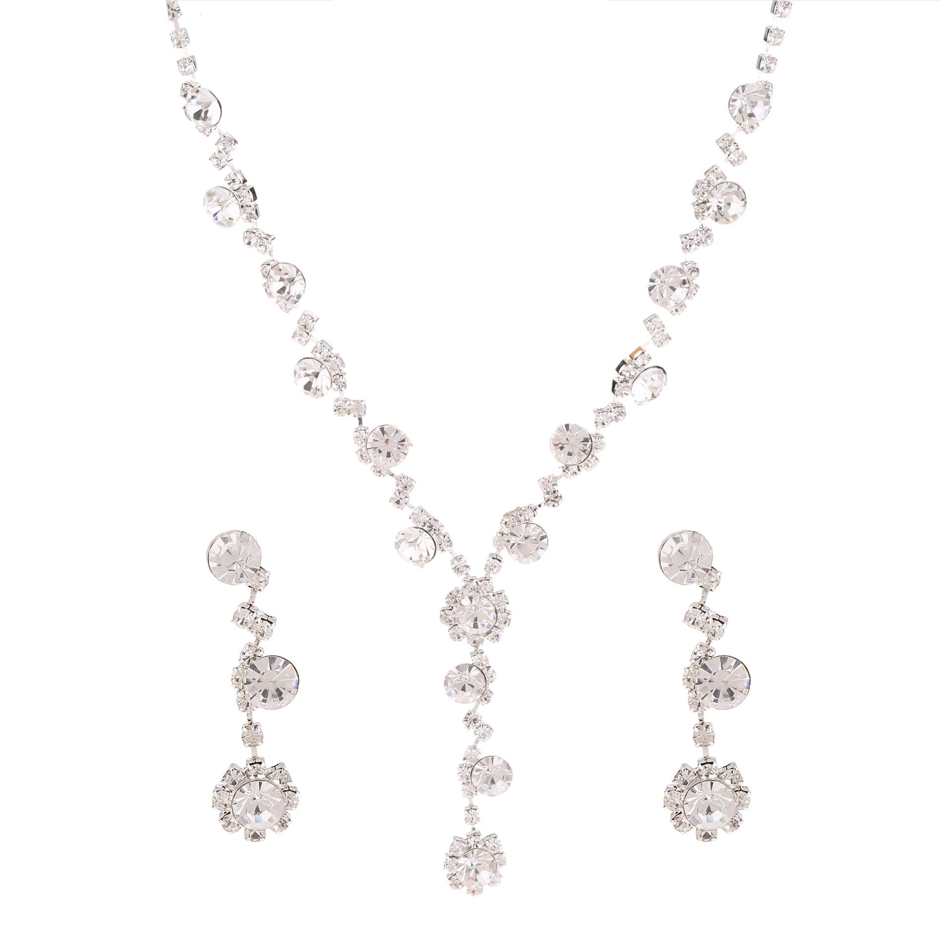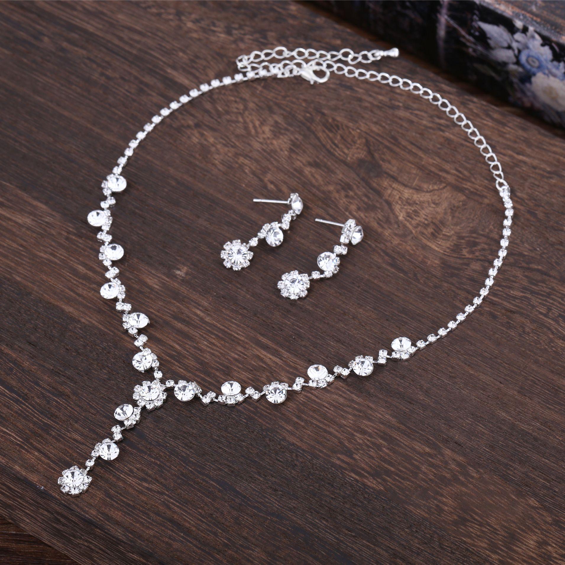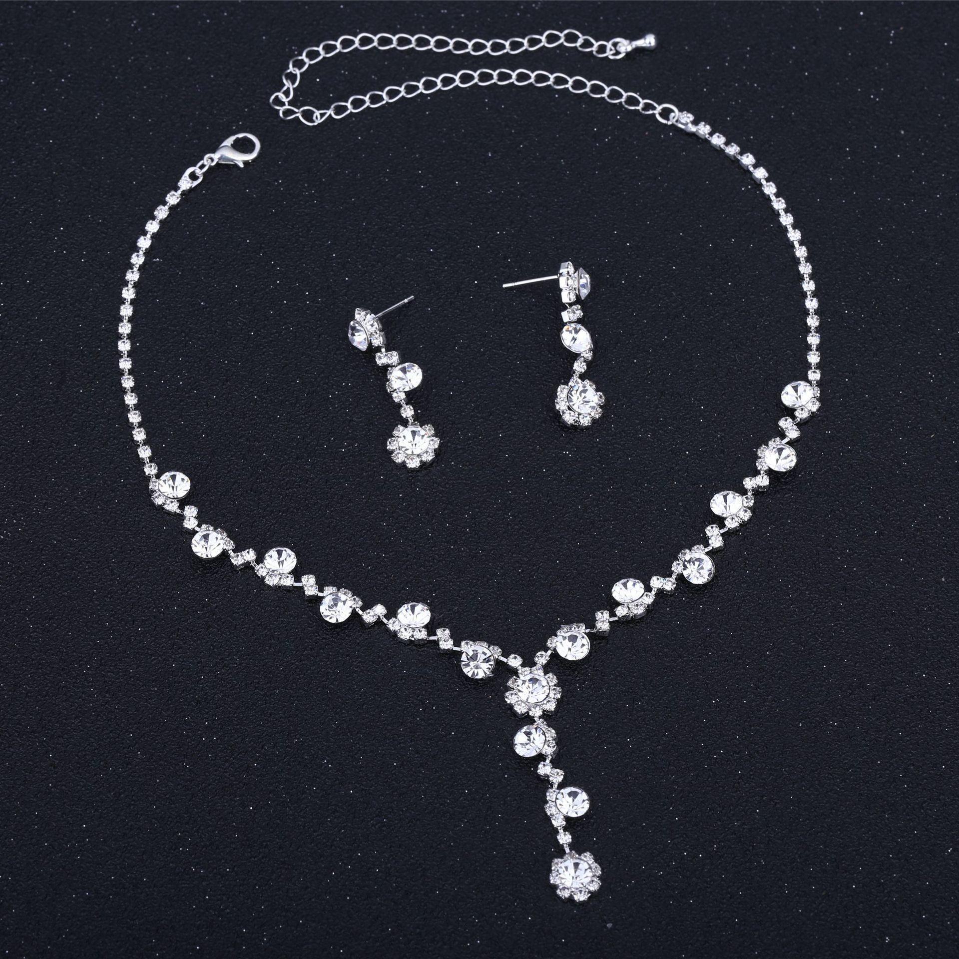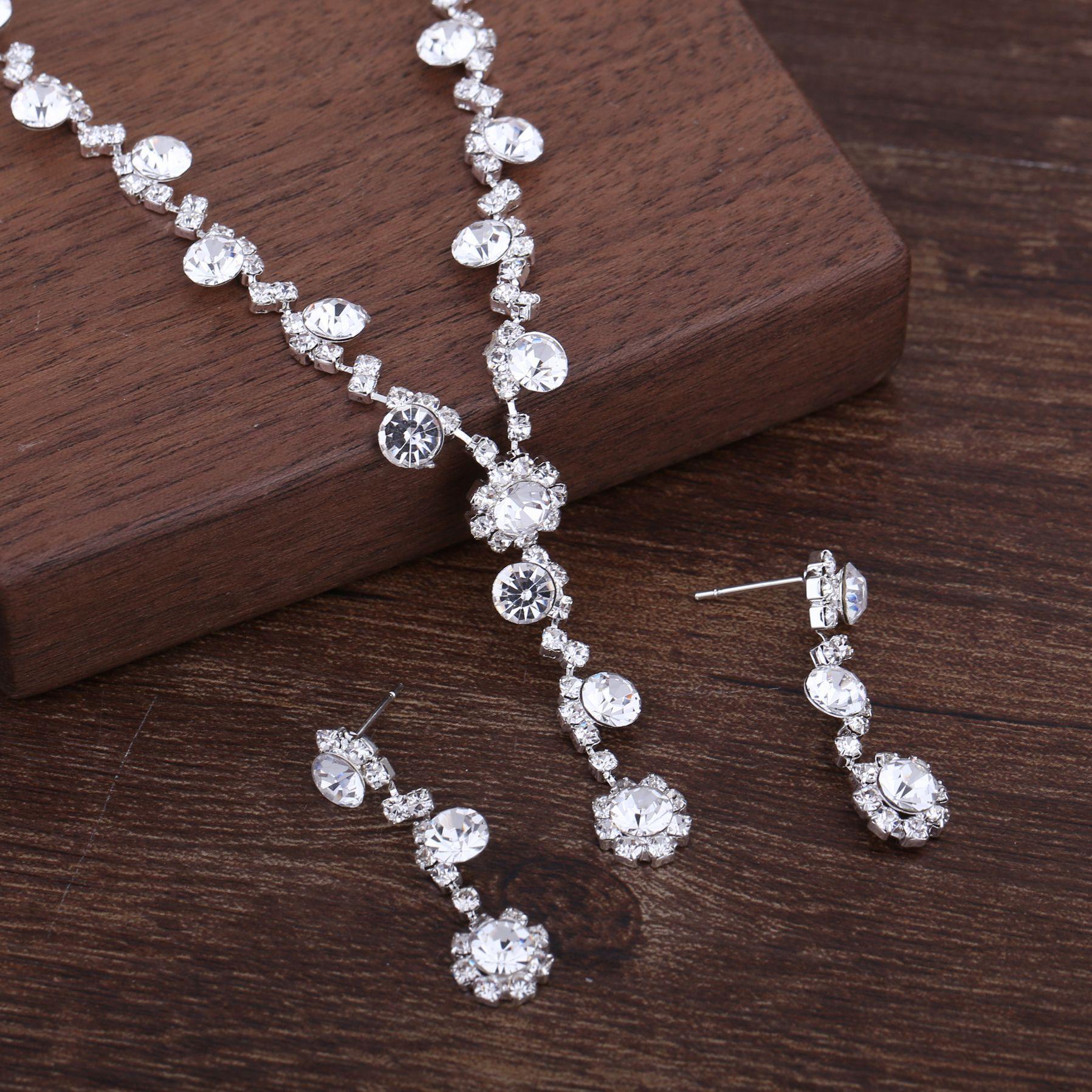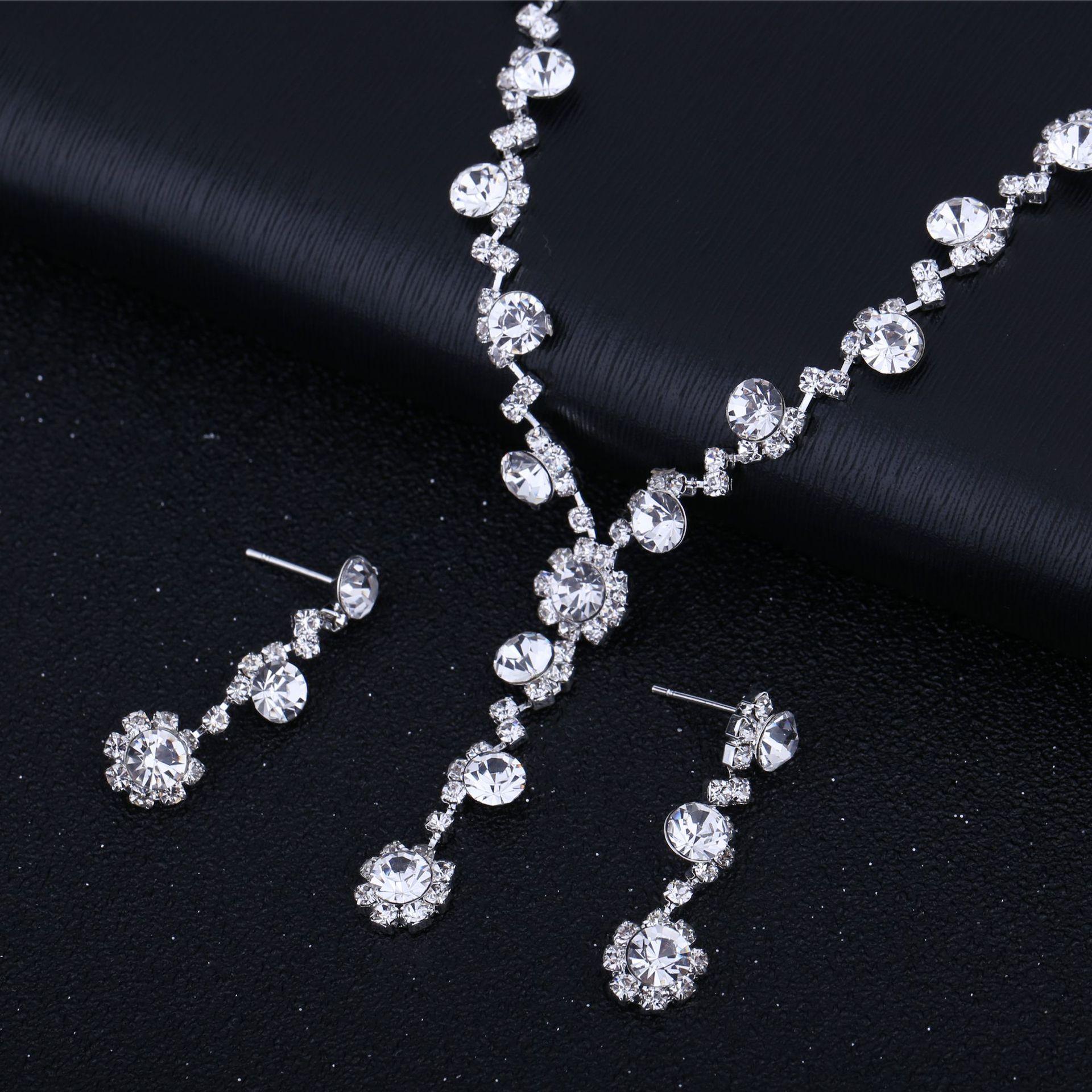 Accesorios de Estilo Nupcial para Boda Collar Brillante Incrustado de Diamantes Plateado Aretes Cadena Joyería Traje Europa y América Transfronterizo