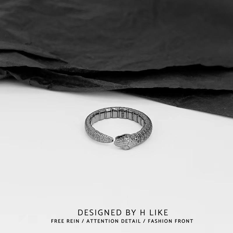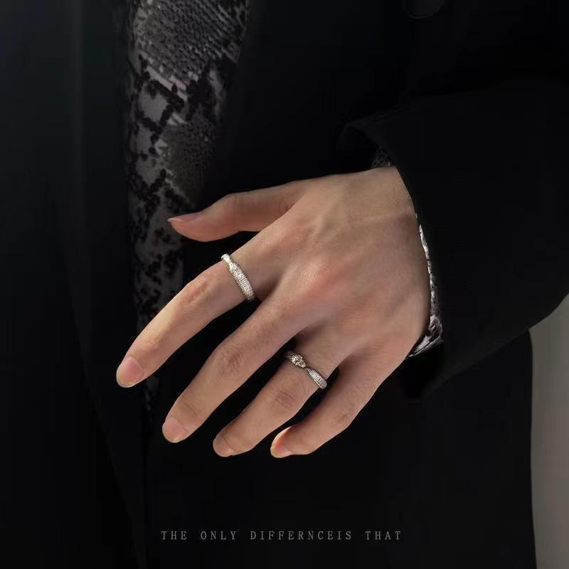 Anillo de serpiente de viento de celebridades de Internet oscuro con temperamento abierto, ajustable, retro, de moda, para hombres y mujeres, diseño moderno y genial para parejas.