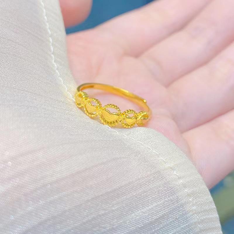 Anillo de Corazón de Oro Arena de Vietnam Año Nuevo Novia Joyería de Temperamento Cobre Chapado en Oro Anillo de Amor Ajustable