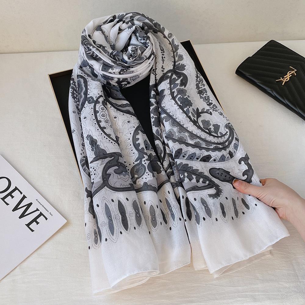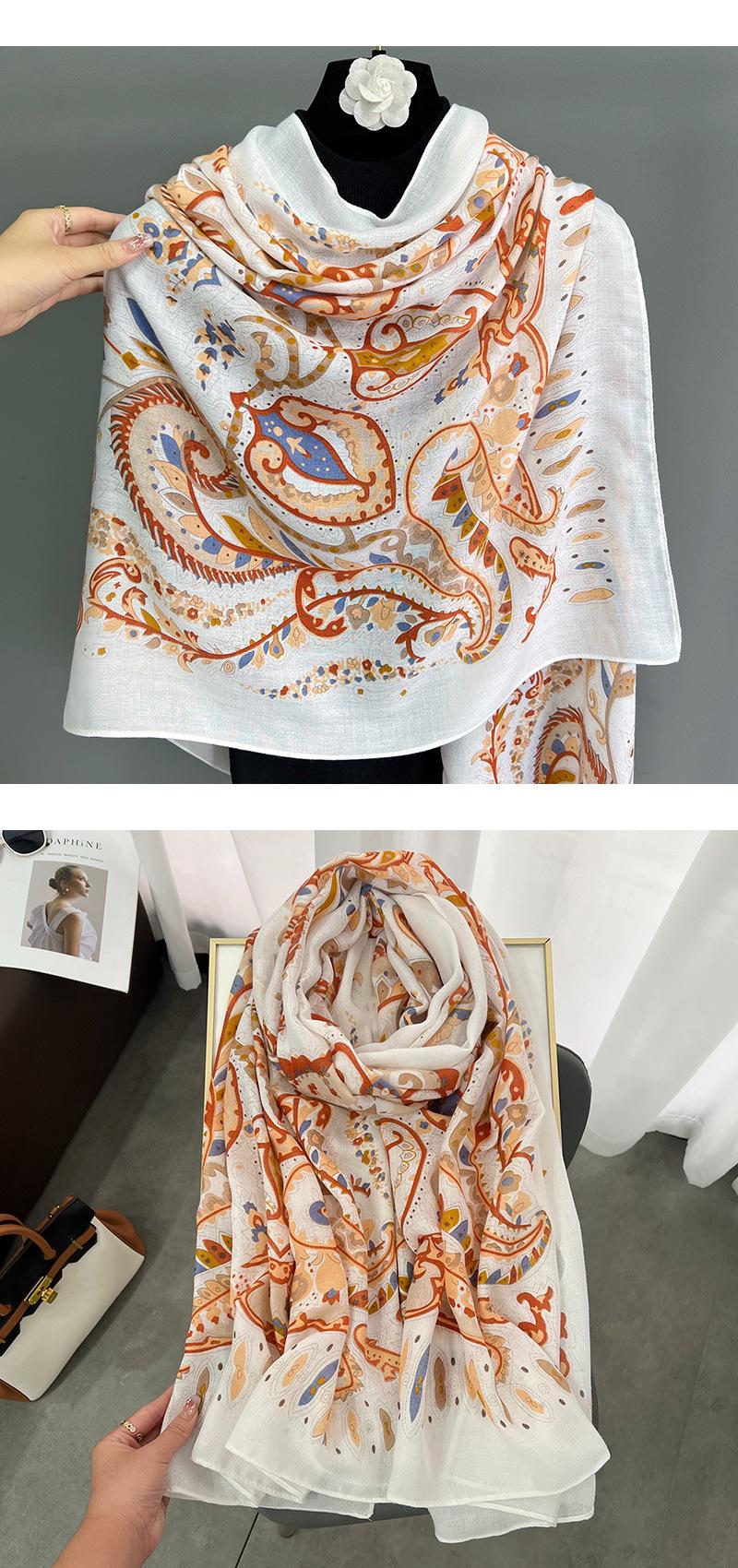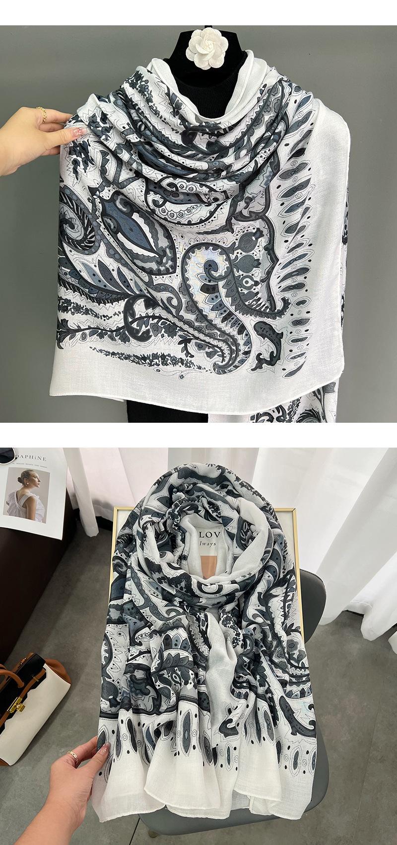 Bufanda Clásica Étnica de Moda Europea y Americana con Flor de Anacardo para Combinar con Todo, de Algodón y Lino Transpirable, Cálida, Decorativa, Chal para Otoño e Invierno