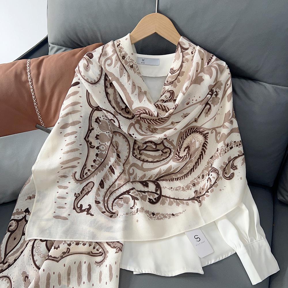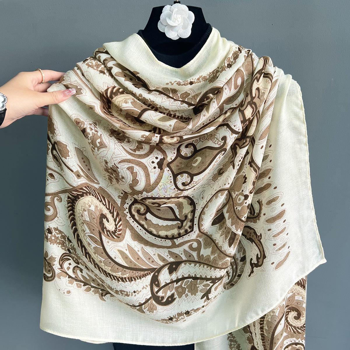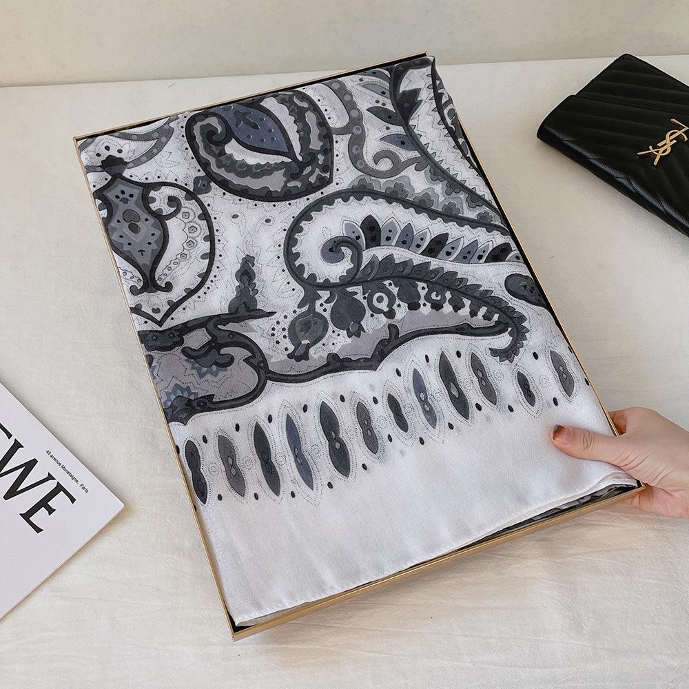 Bufanda Clásica Étnica de Moda Europea y Americana con Flor de Anacardo para Combinar con Todo, de Algodón y Lino Transpirable, Cálida, Decorativa, Chal para Otoño e Invierno