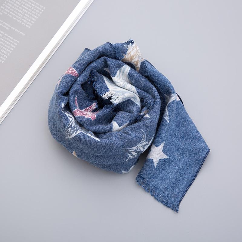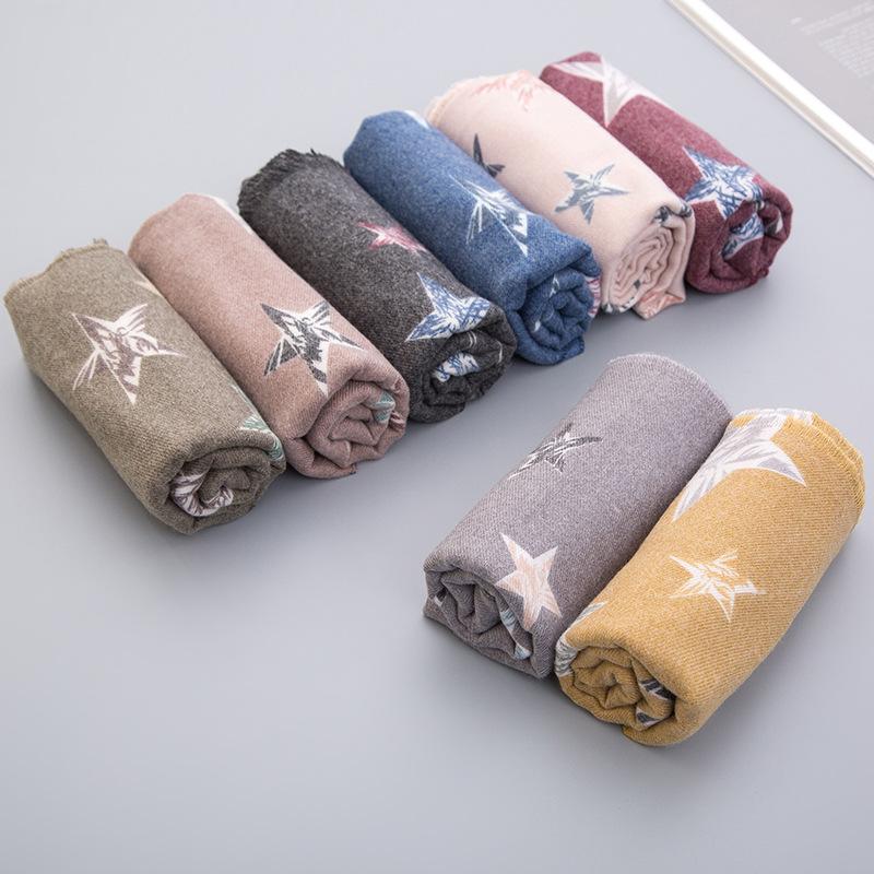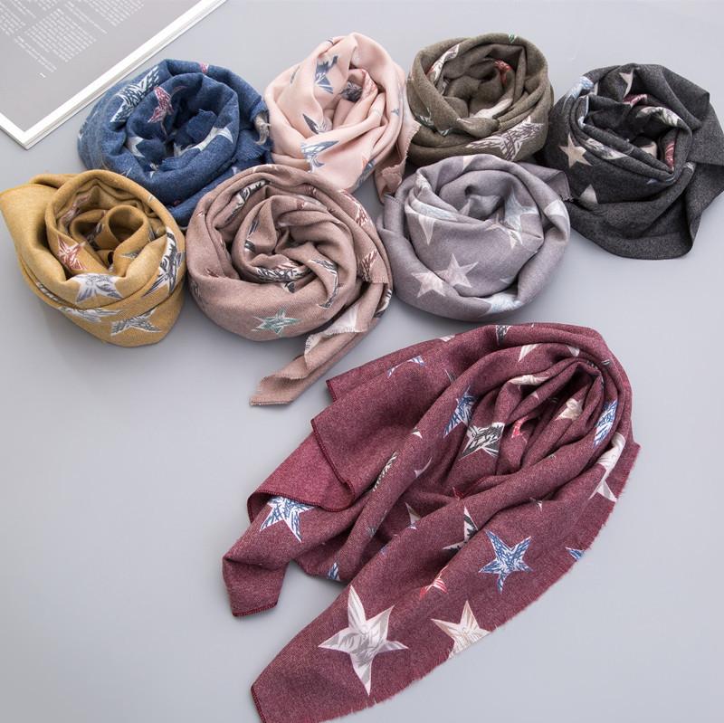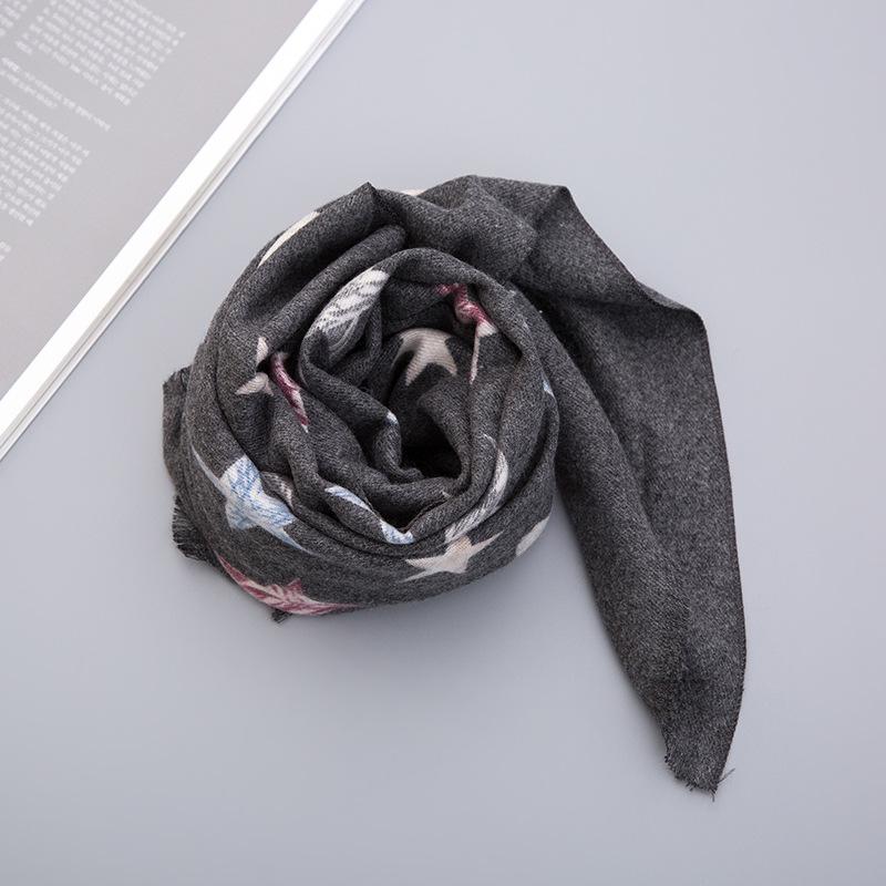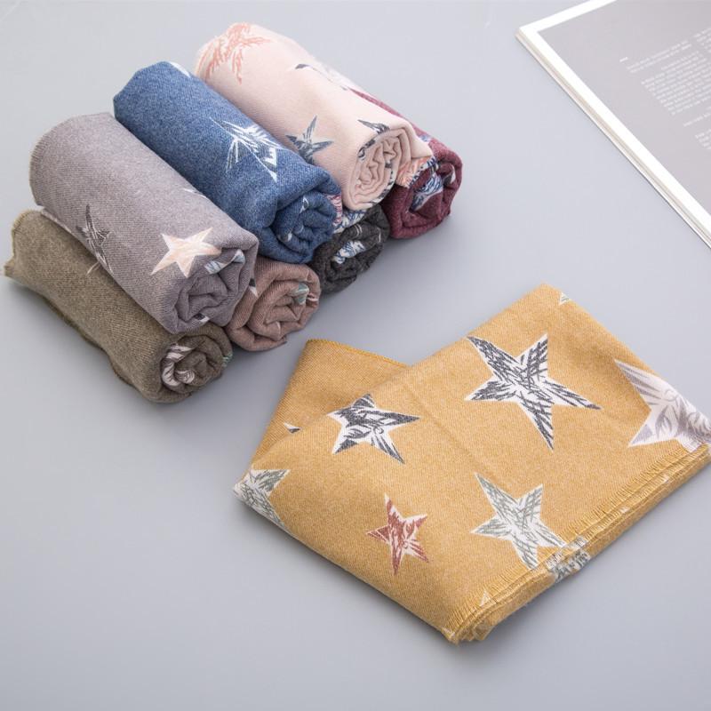 Nueva bufanda de cachemira gruesa y cálida para niños de estilo coreano, con estampado de estrella de cinco puntas, para otoño e invierno, a la moda.