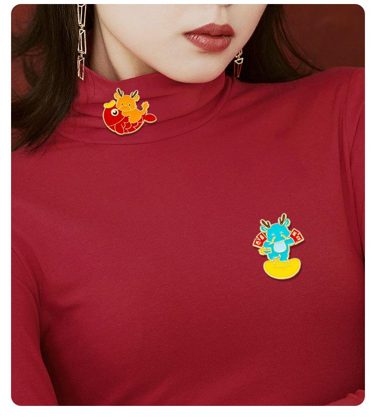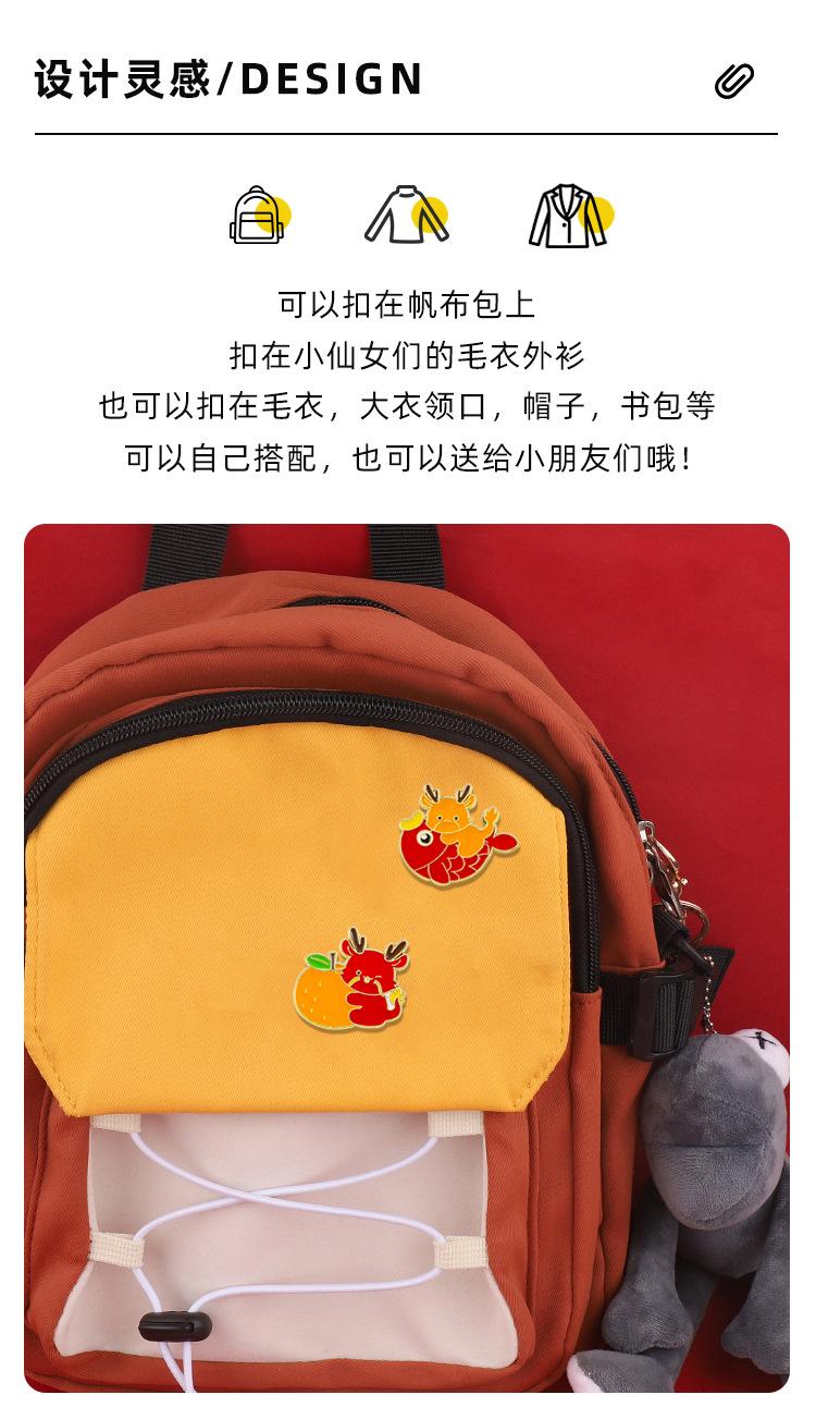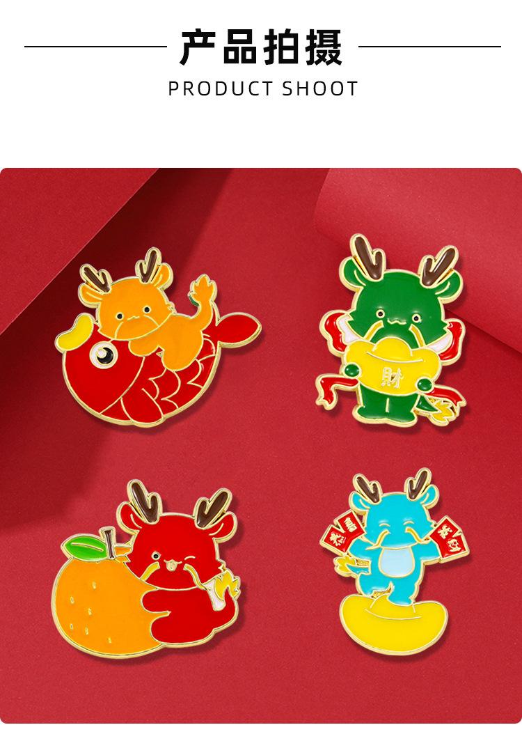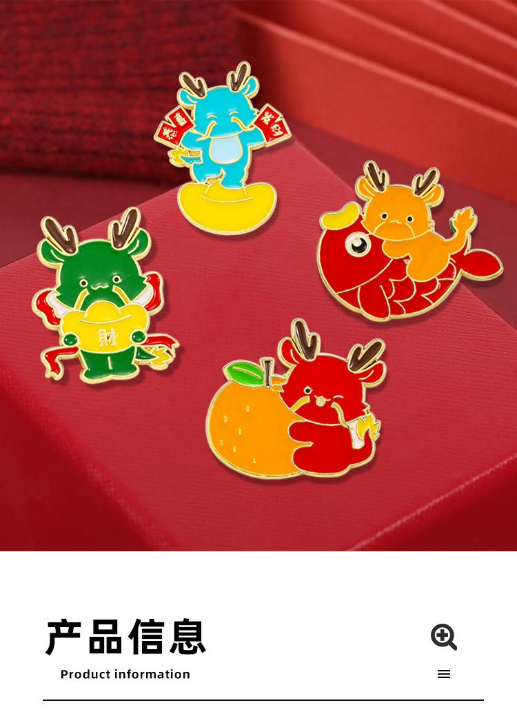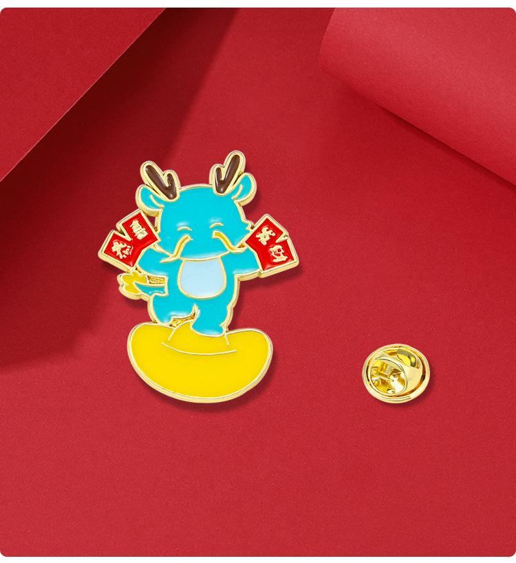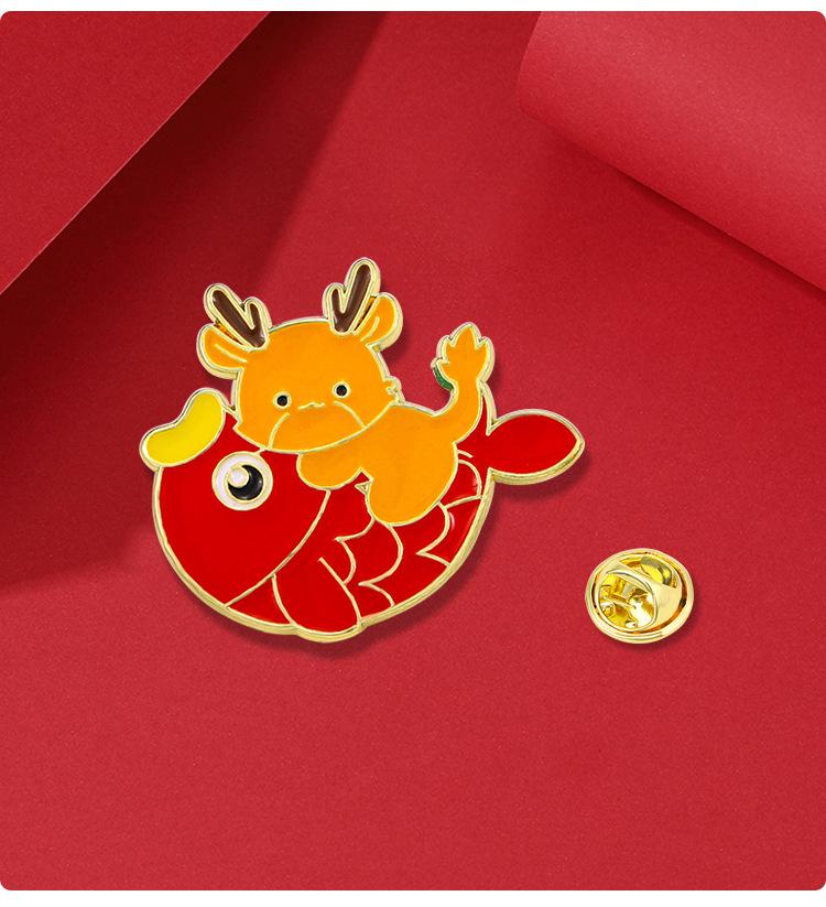 Broche de dragón de dibujos animados de moda nacional del zodiaco chino, Koi de la suerte, accesorios de Año Nuevo, insignia para niños y estudiantes, regalo
