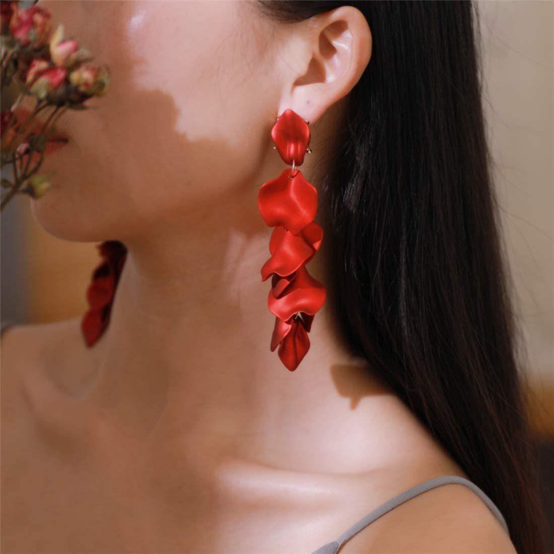Pendientes de borla de pétalos de rosa largos con aguja de plata S925 transfronterizos, elegantes y de moda, al por mayor