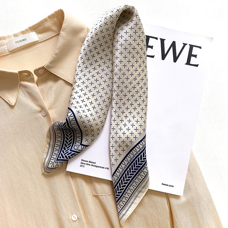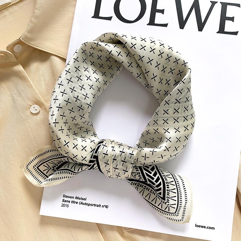 | Bufanda de seda retro, bufanda estrecha y larga de imitación de seda, decoración femenina con esquinas afiladas, decoración de moda, diadema de seda, bufanda al por mayor |