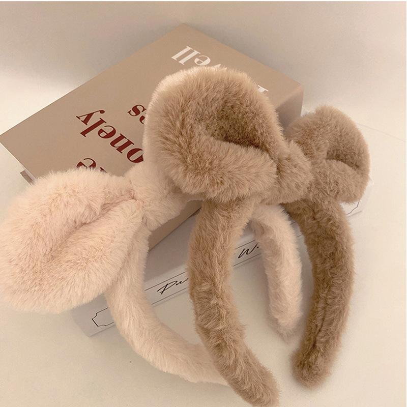 Diadema con orejas de conejo de peluche de dibujos animados para otoño e invierno, para lavarse la cara y aplicar mascarilla, para celebridades de Internet, accesorios para el cabello bonitos y dulces.