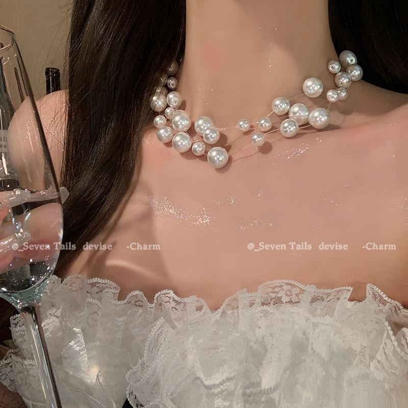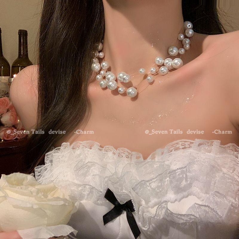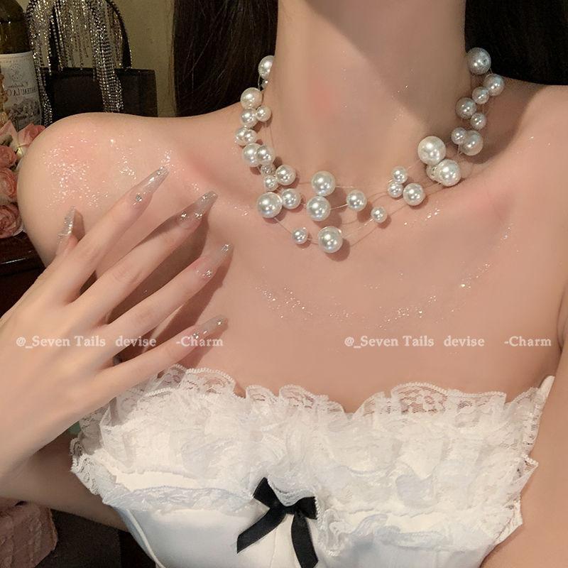 Elegante collar de perlas de estrella para mujer 2024 nuevo collar gargantilla ligera de lujo nicho cadena de clavícula accesorios g