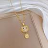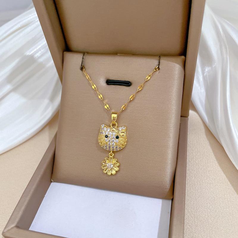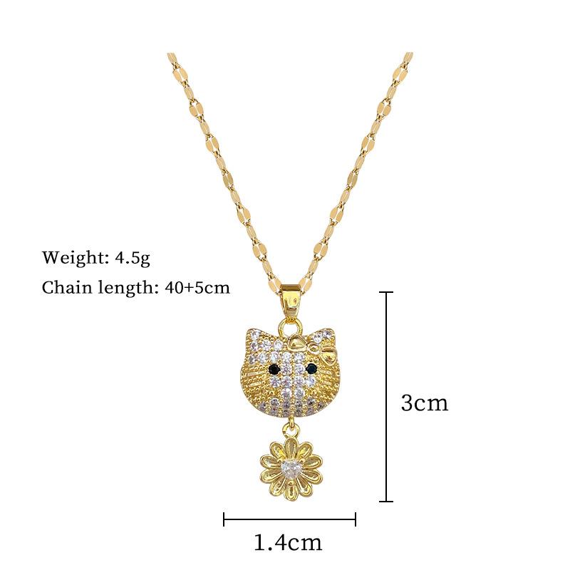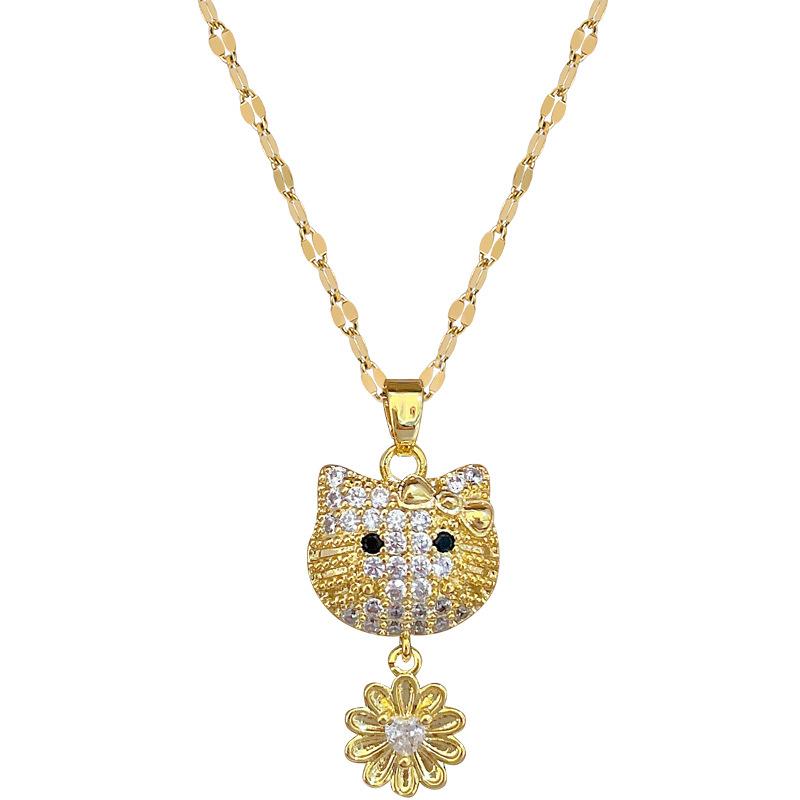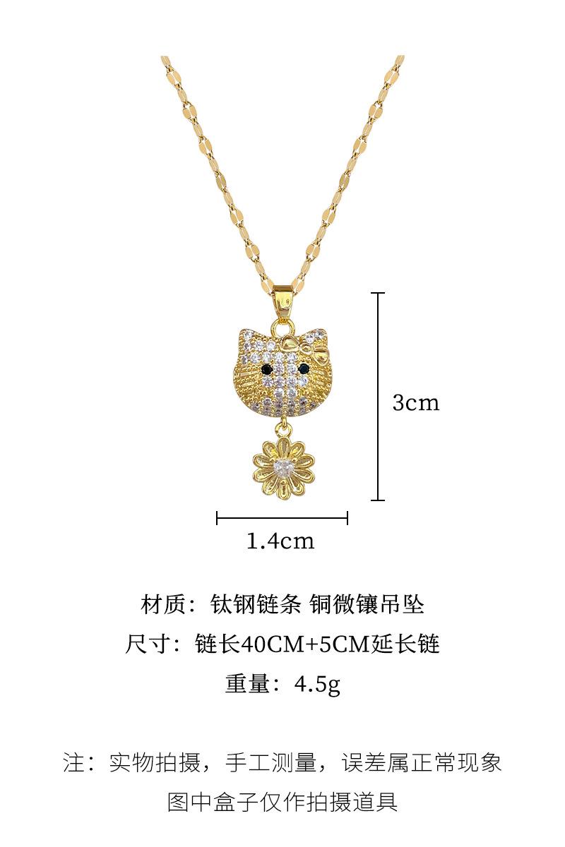 [Acero de titanio] Collar elegante y lujoso con diseño de flor, gato y circón, cadena de clavícula para mujer, combinable con todo.