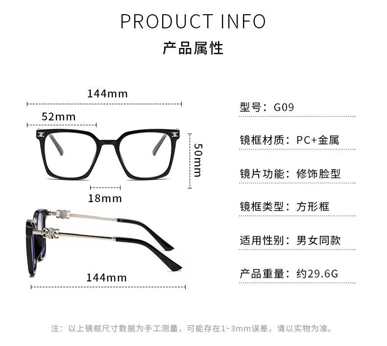 Gafas de Montura Negra Lisa para Mujer Versión Coreana Delgada Aspecto Adelgazante Luz Azul Antirreflejo Gafas Planas Estilo Celebridad de Internet Gafas Arco del Triunfo con Miopía