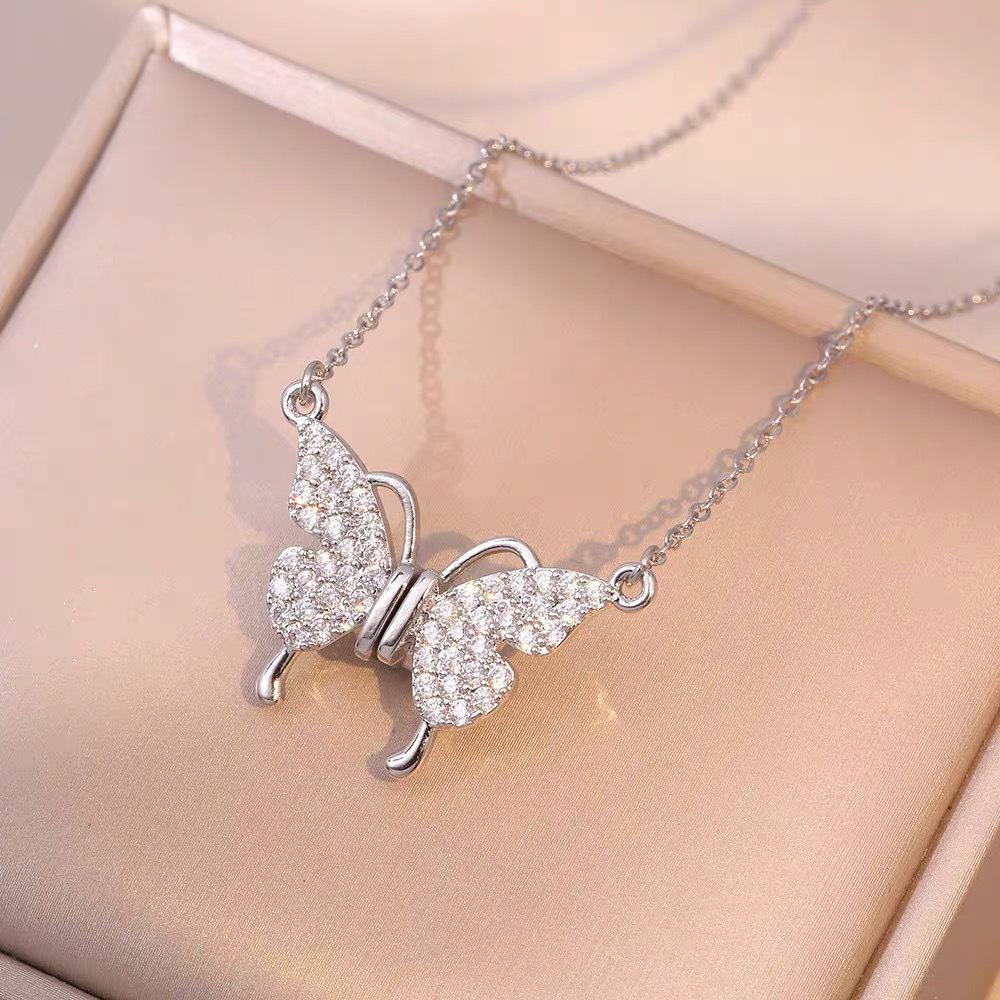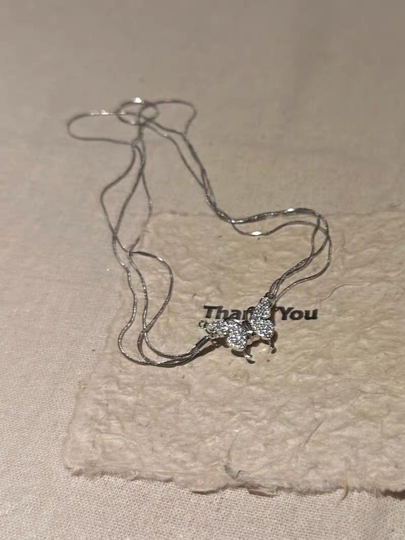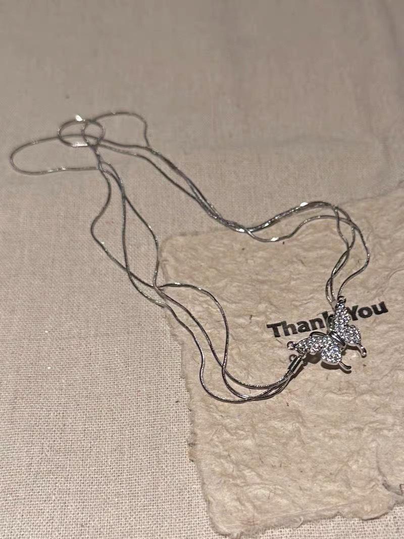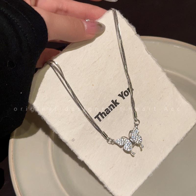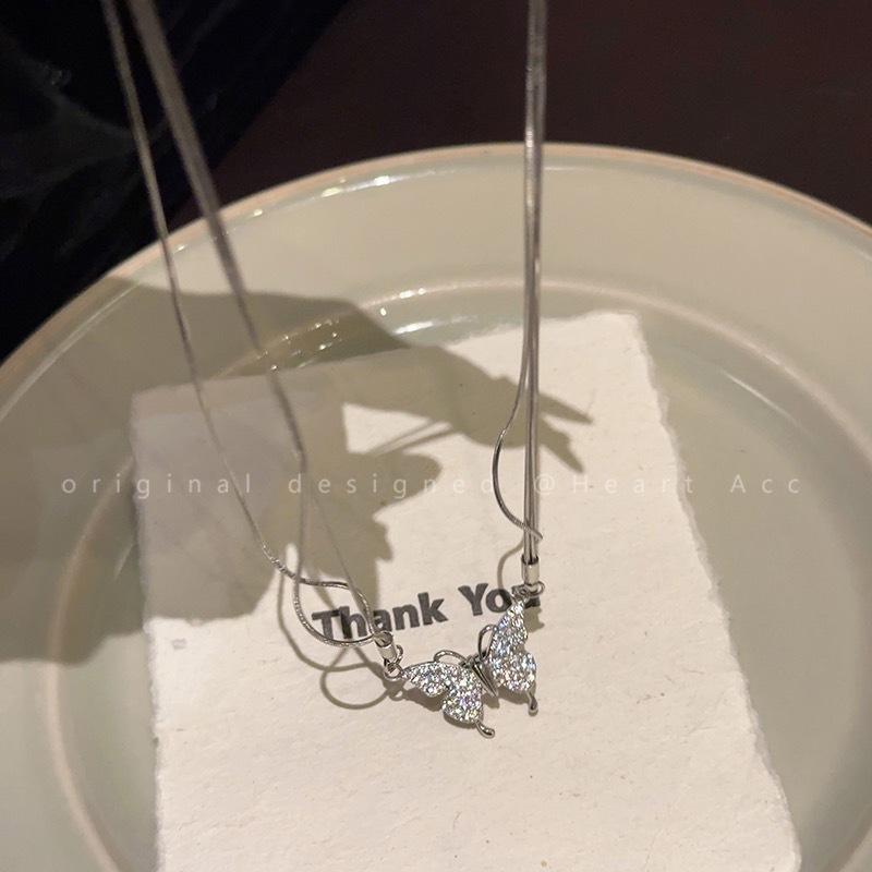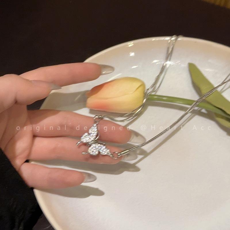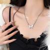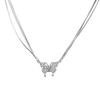 Collar de mariposa magnético de doble capa con diamantes completos, collar de acero de titanio de mariposa que combina con todo, cadena para la clavícula, collar de mariposa de doble capa con micro incrustaciones