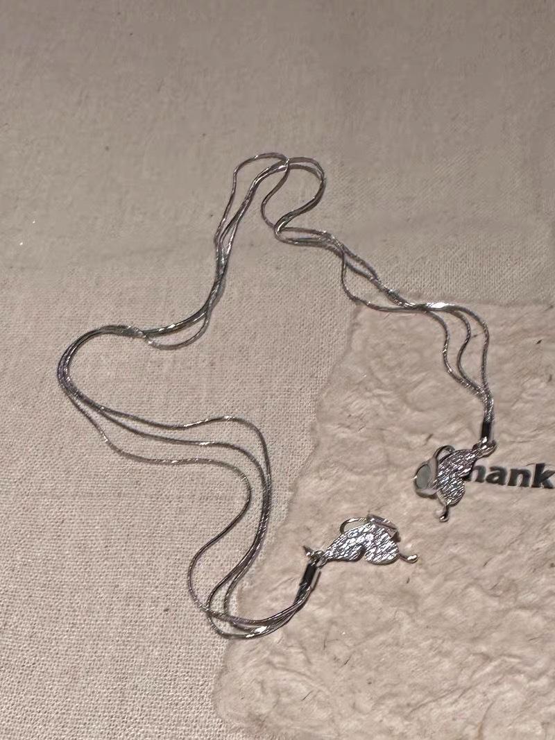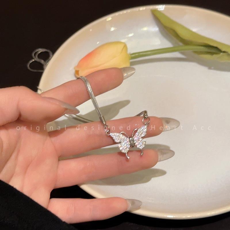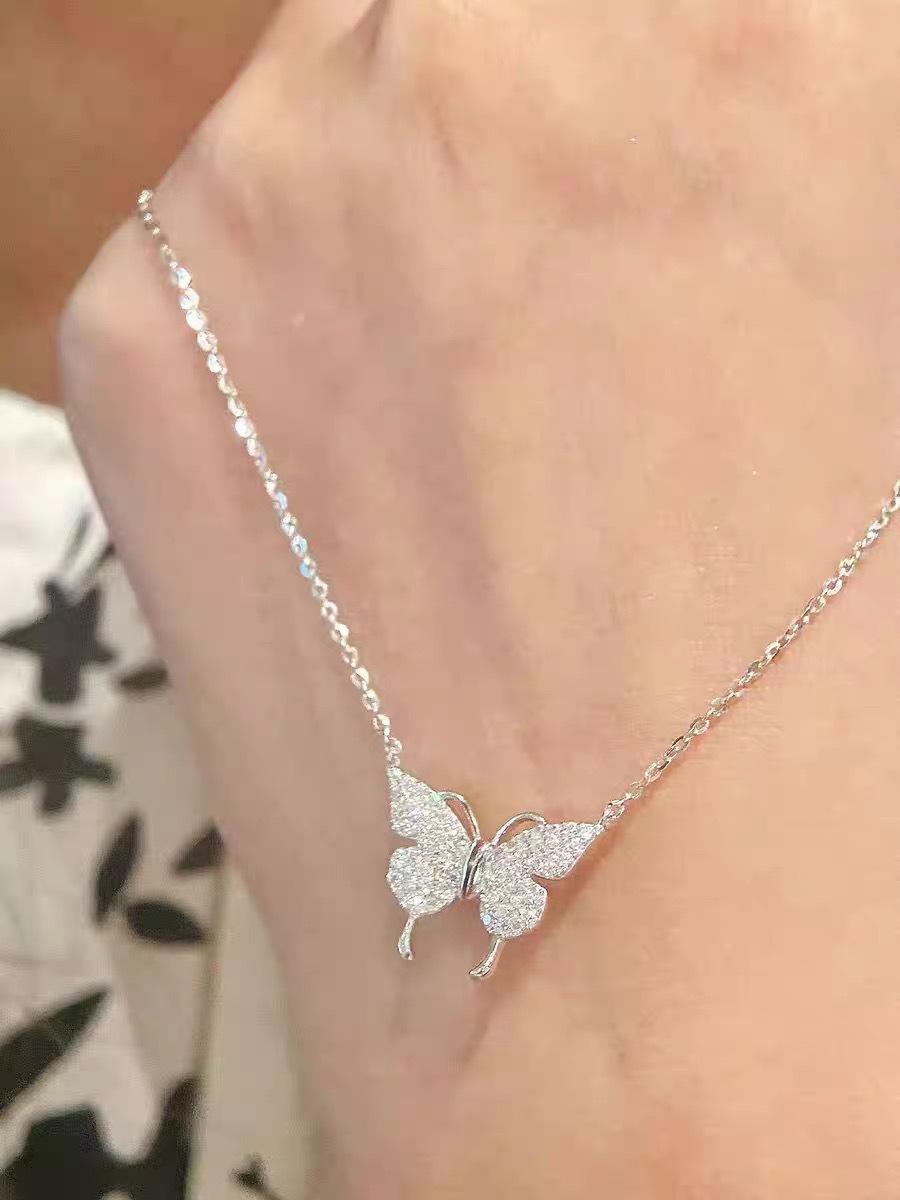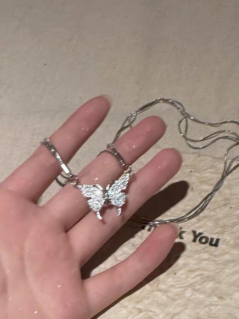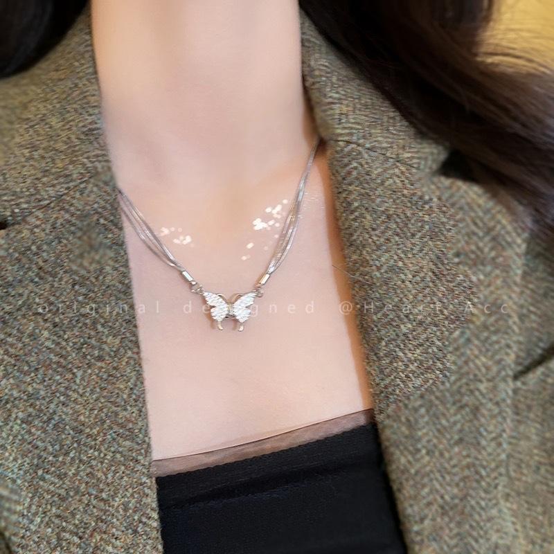 Collar de mariposa magnético de doble capa con diamantes completos, collar de acero de titanio de mariposa que combina con todo, cadena para la clavícula, collar de mariposa de doble capa con micro incrustaciones