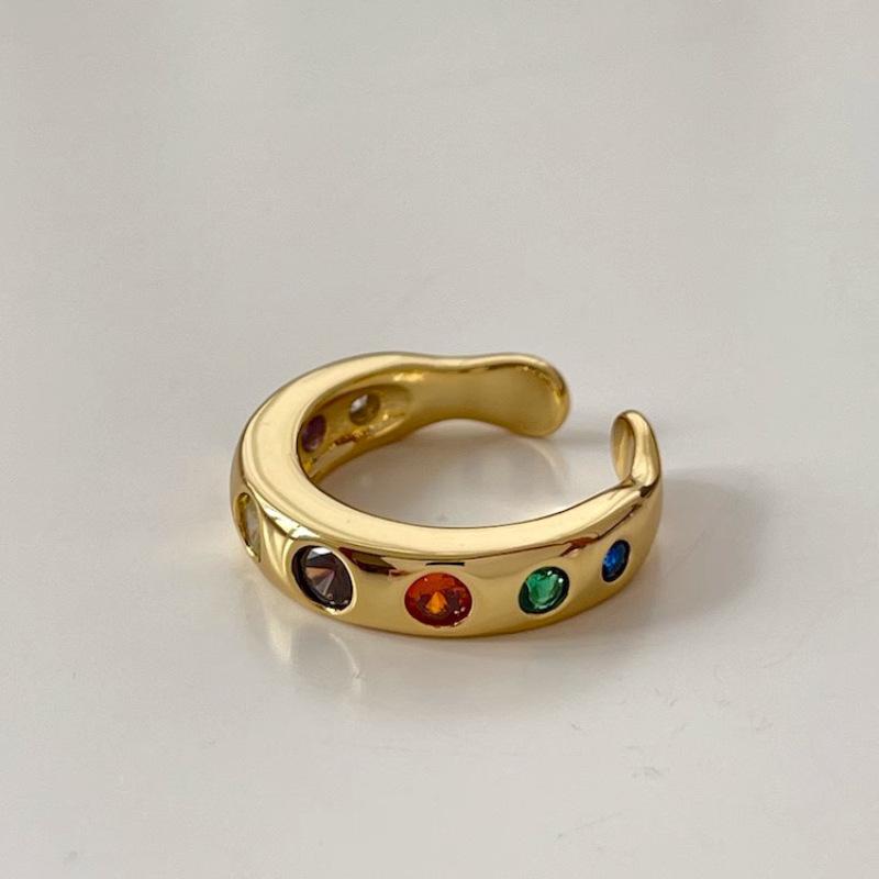 Anillo de nicho retro de estilo francés con incrustaciones de circón colorido para mujer, moda versátil de lujo ligero, anillo de dedo índice de alta gama