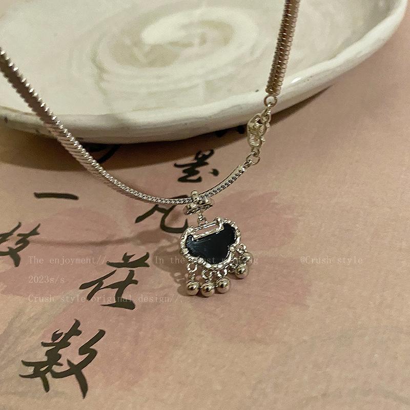 Nuevo collar con cerradura de seguridad de estilo chino para mujer, verano 2023, nuevo diseño, cadena de hueso de serpiente, cadena de clavícula retro Joker, venta al por mayor