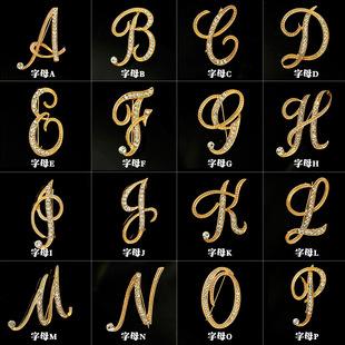 Broche de 26 letras inglesas con diamantes de imitación para solapa, insignia personalizada, pin para cuello, hebilla, accesorios de ropa al por mayor