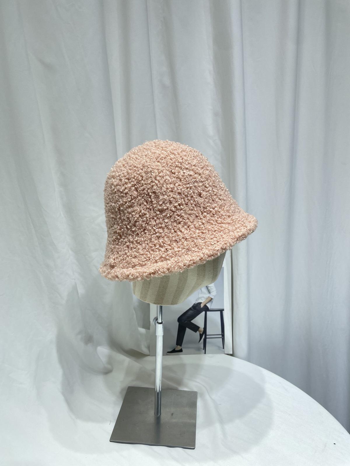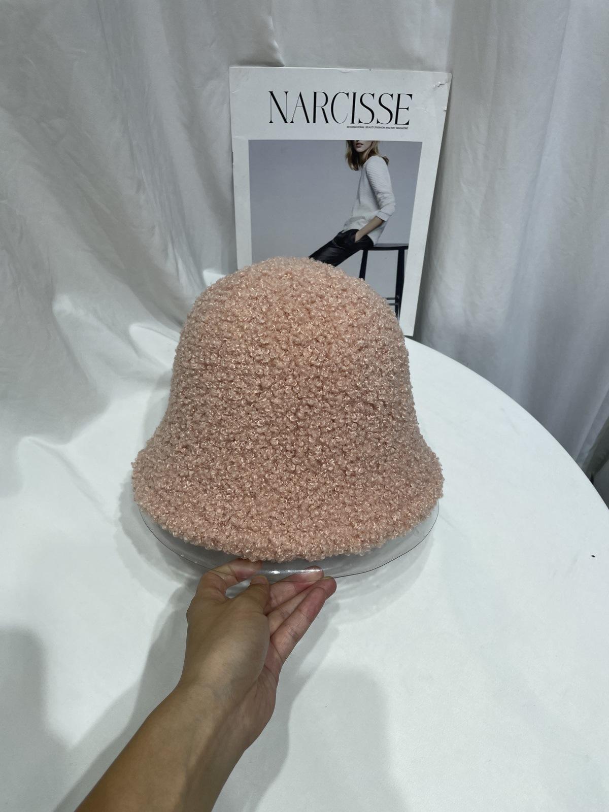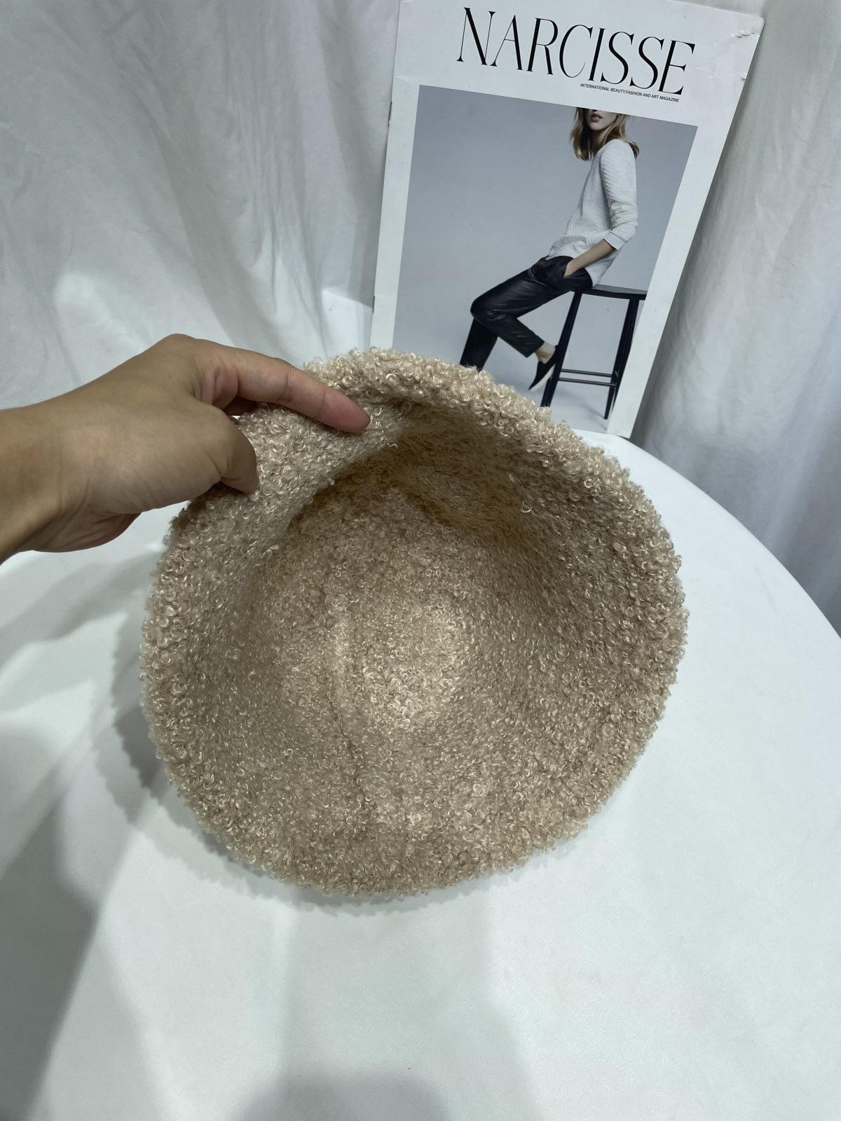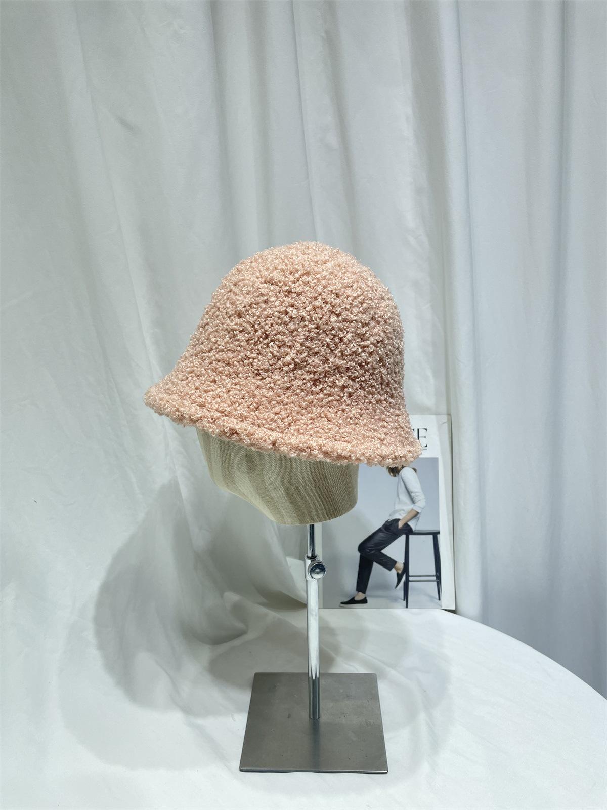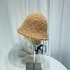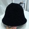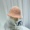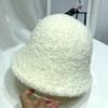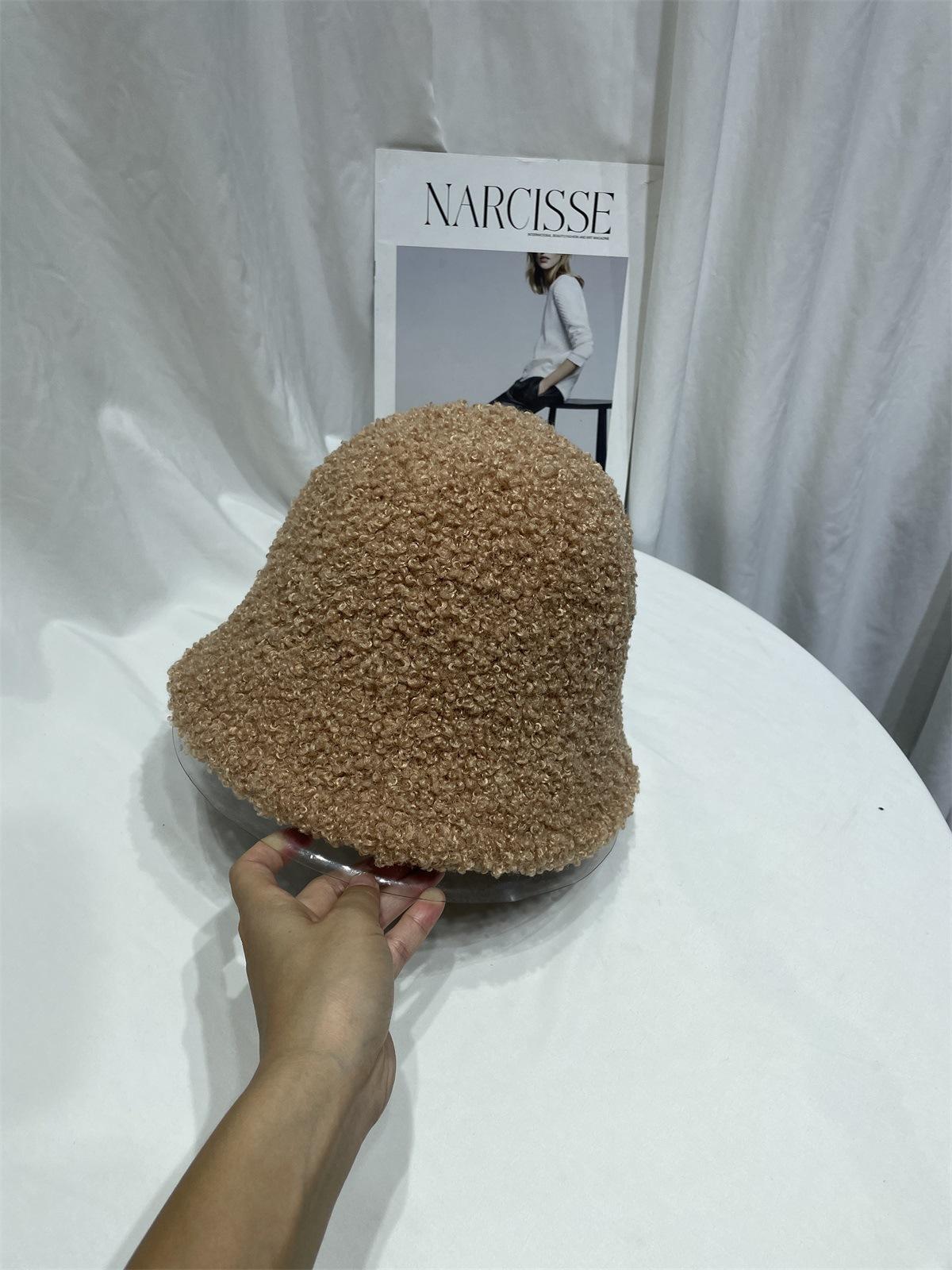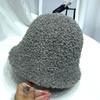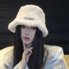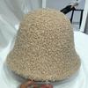 Sombrero de pescador de lana de cordero de estilo coreano de moda para mujer, otoño e invierno, cálido, liso, con cubierta para la cara, sombrero de cubo con aspecto de cara, pequeño sombrero de lavabo de felpa a la moda.