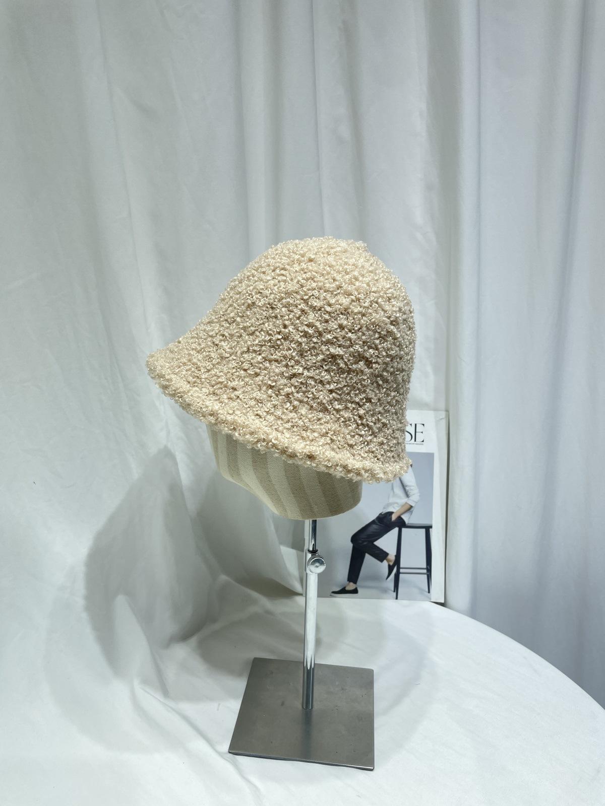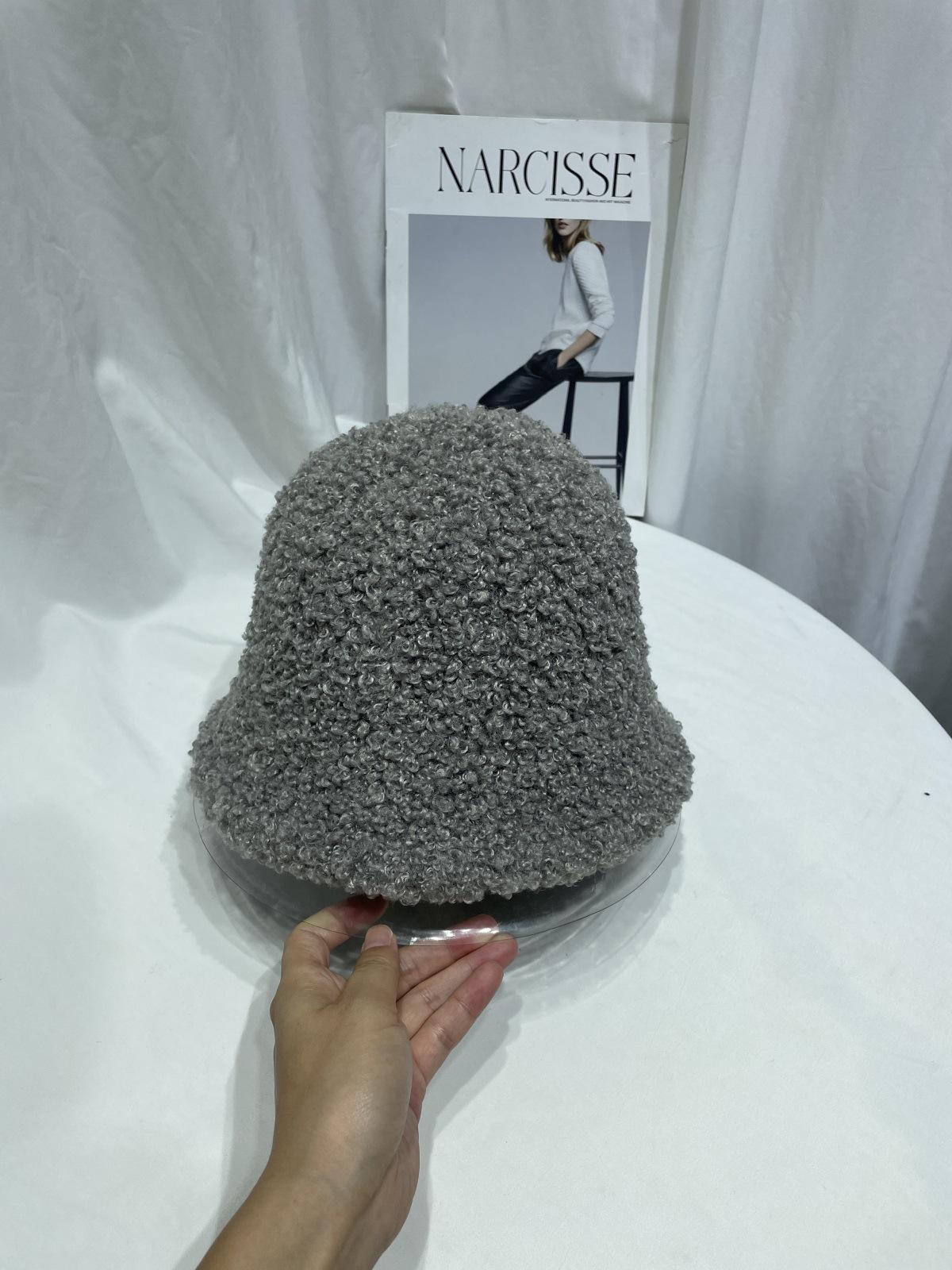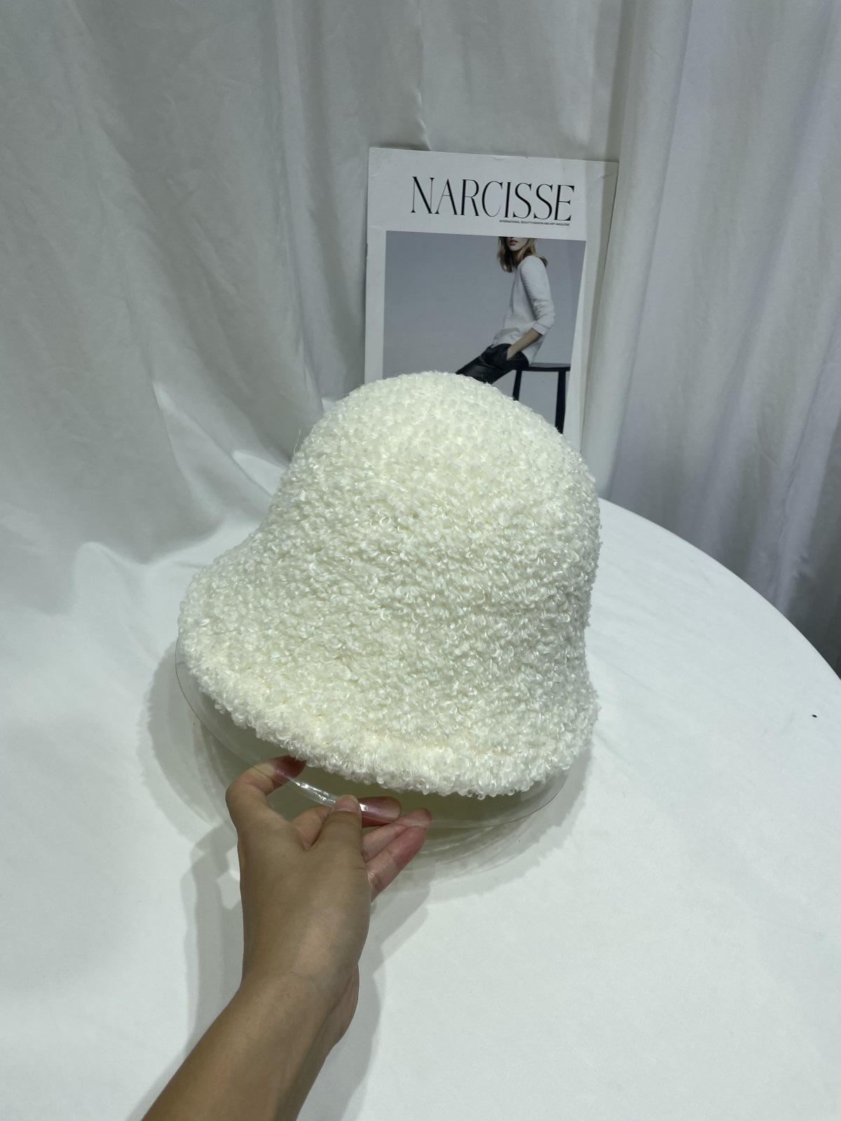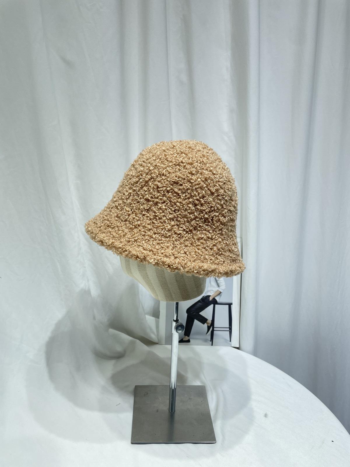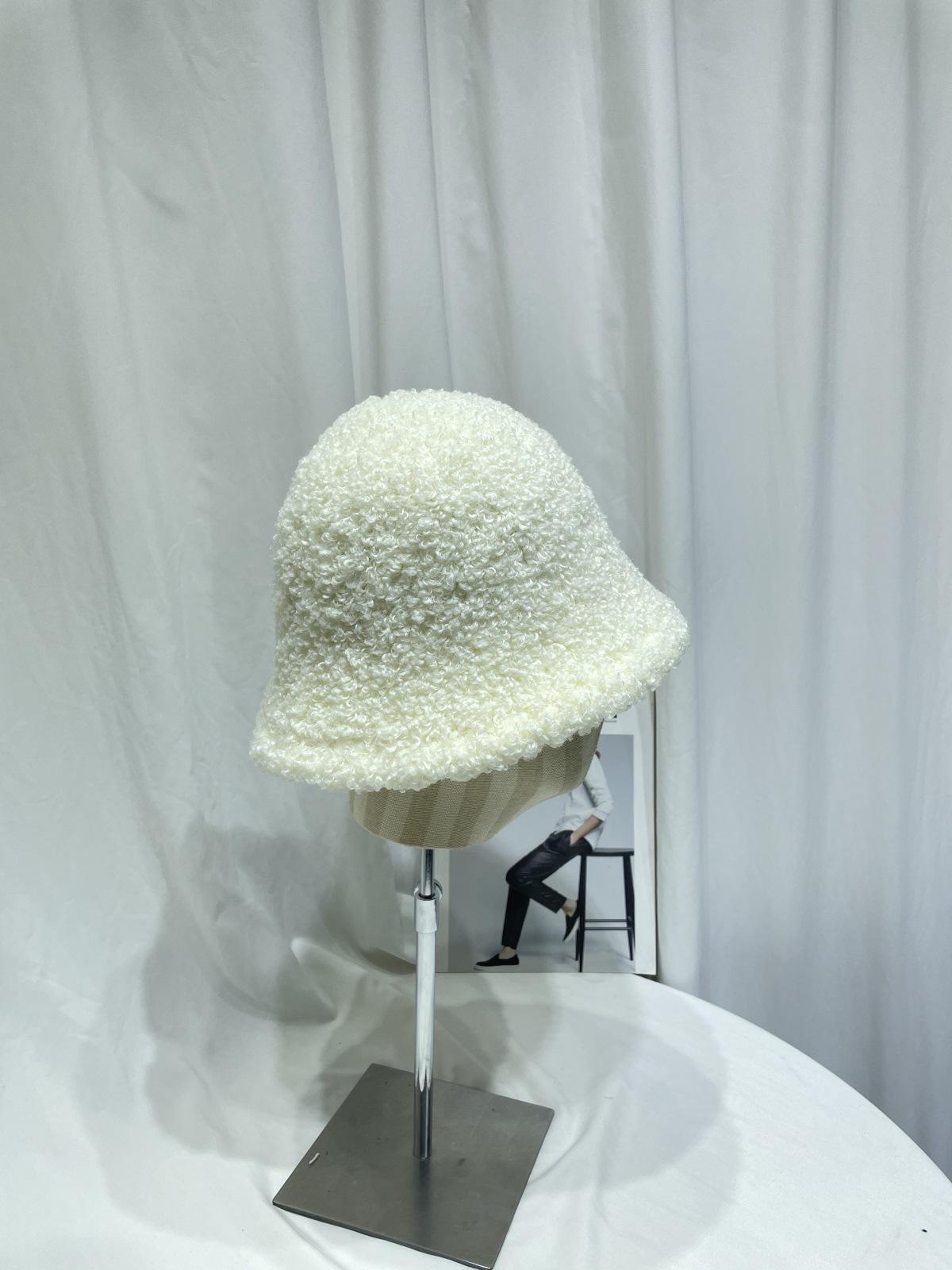 Sombrero de pescador de lana de cordero de estilo coreano de moda para mujer, otoño e invierno, cálido, liso, con cubierta para la cara, sombrero de cubo con aspecto de cara, pequeño sombrero de lavabo de felpa a la moda.