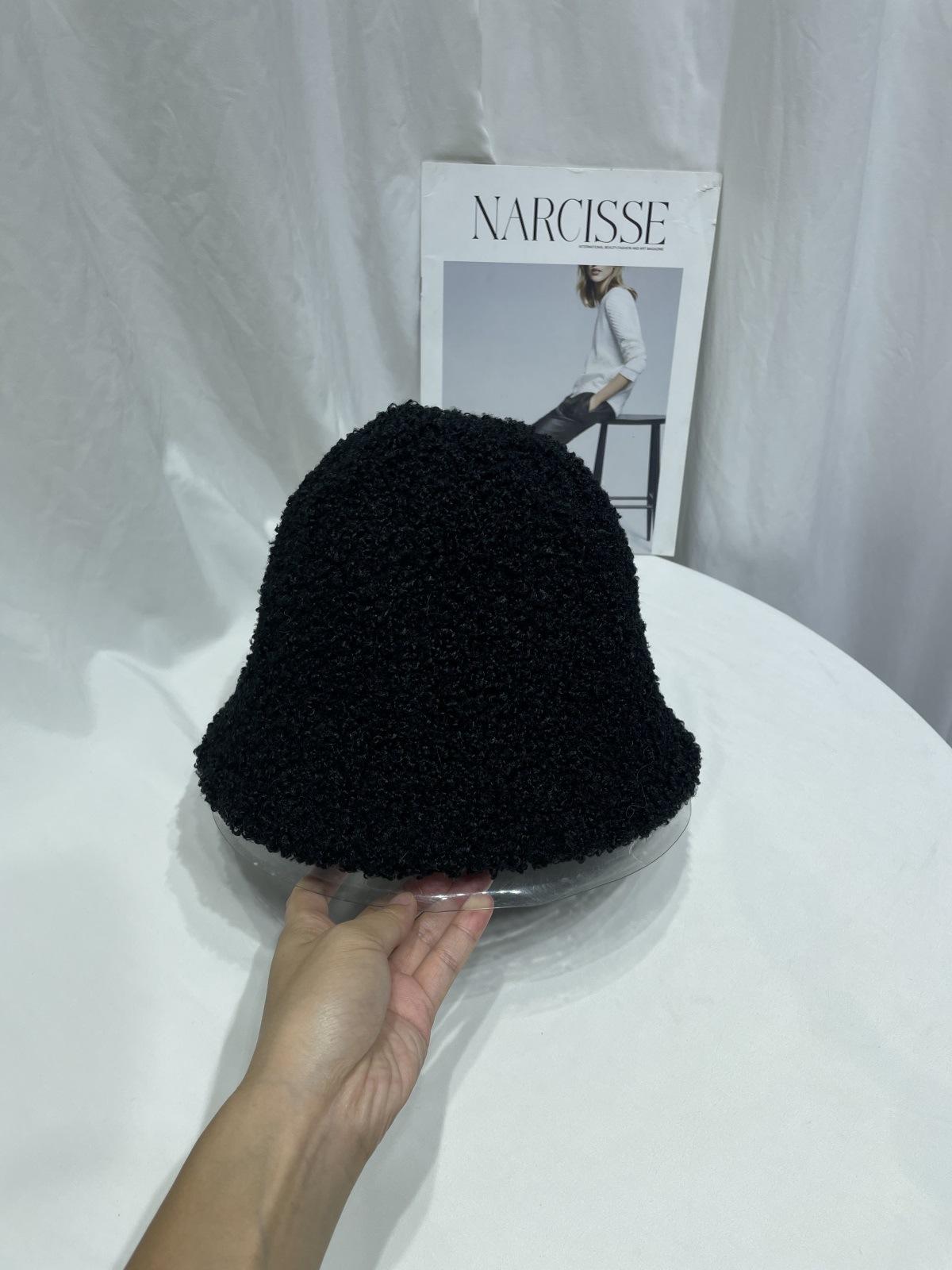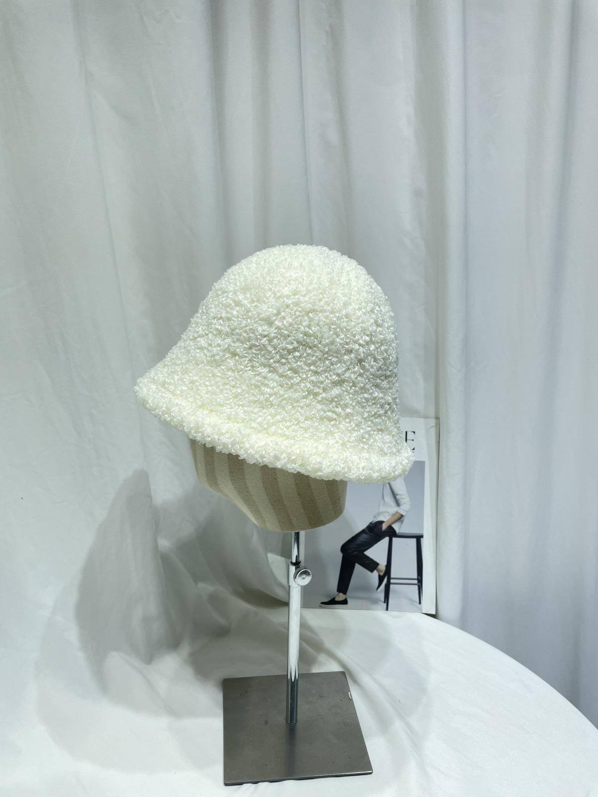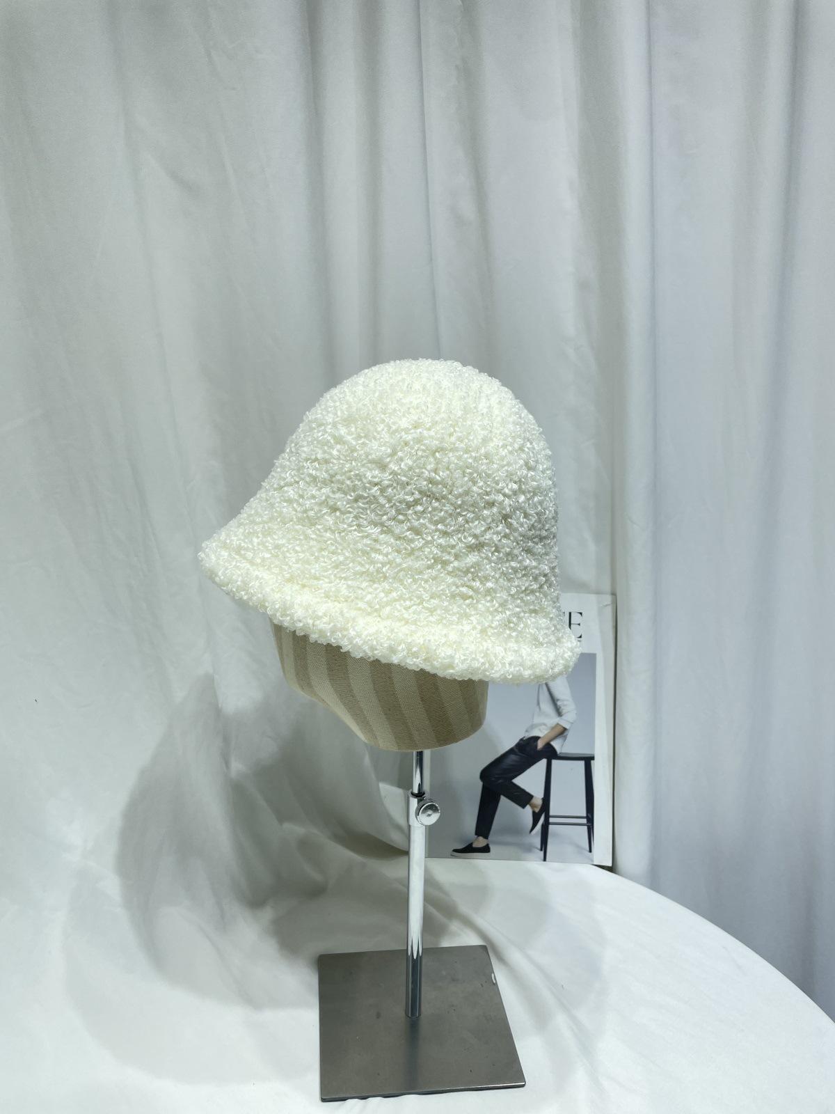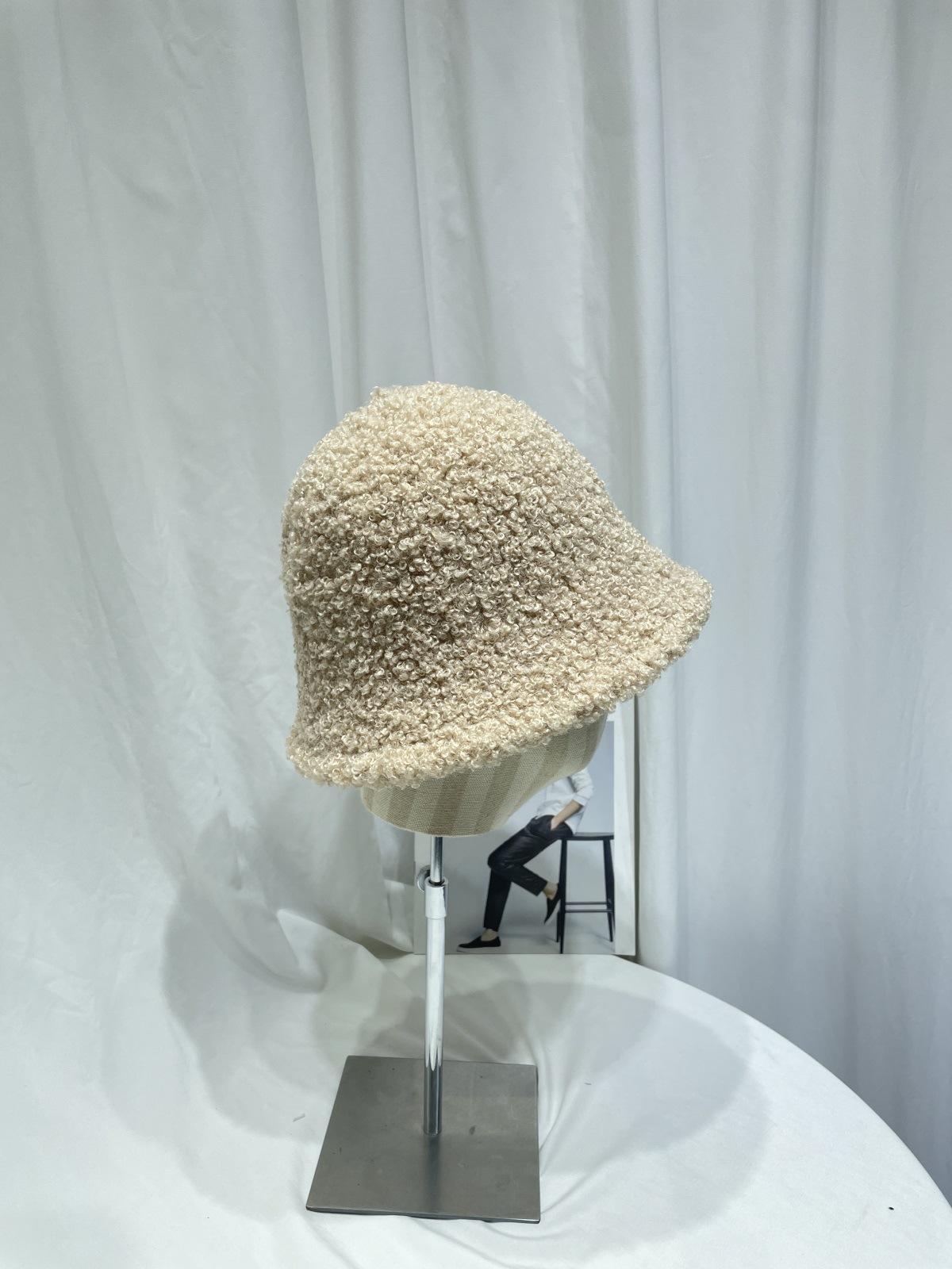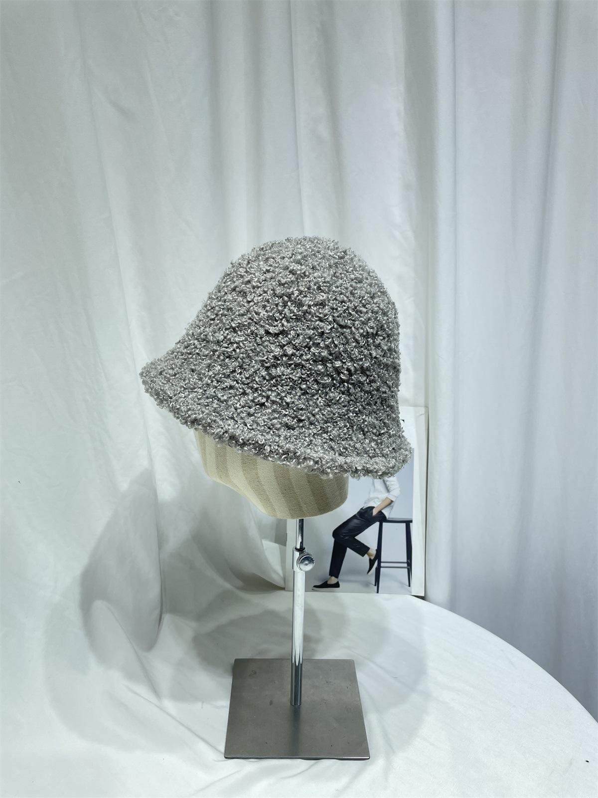 Sombrero de pescador de lana de cordero de estilo coreano de moda para mujer, otoño e invierno, cálido, liso, con cubierta para la cara, sombrero de cubo con aspecto de cara, pequeño sombrero de lavabo de felpa a la moda.