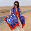 Capa informal para fotos de viajes al aire libre, transpirable, cómoda, grande, con cadena, estilo étnico, chal estampado a rayas
